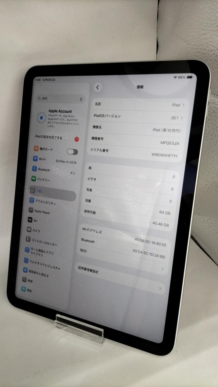 iPadOS:26.1/ストレージ:64GB/Wi-Fiモデル |