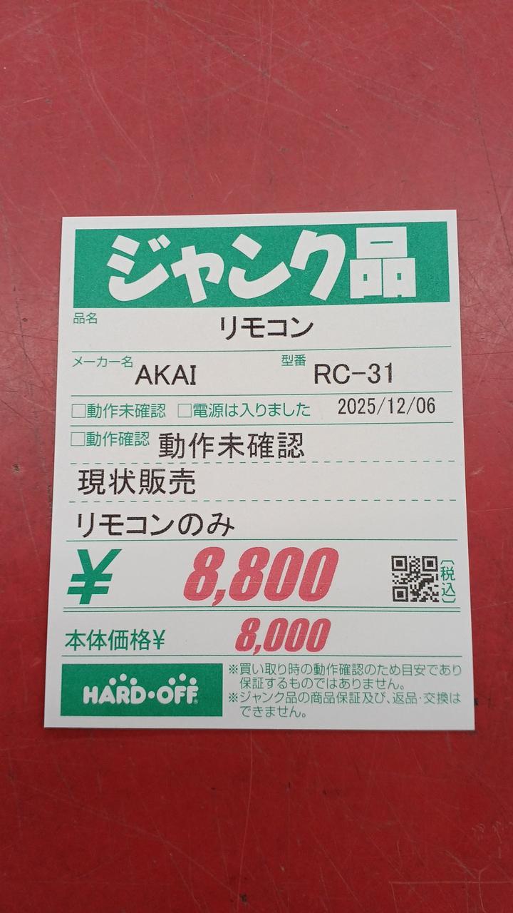 リモコン本体のみの発送です。