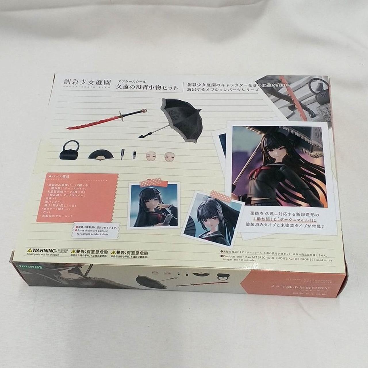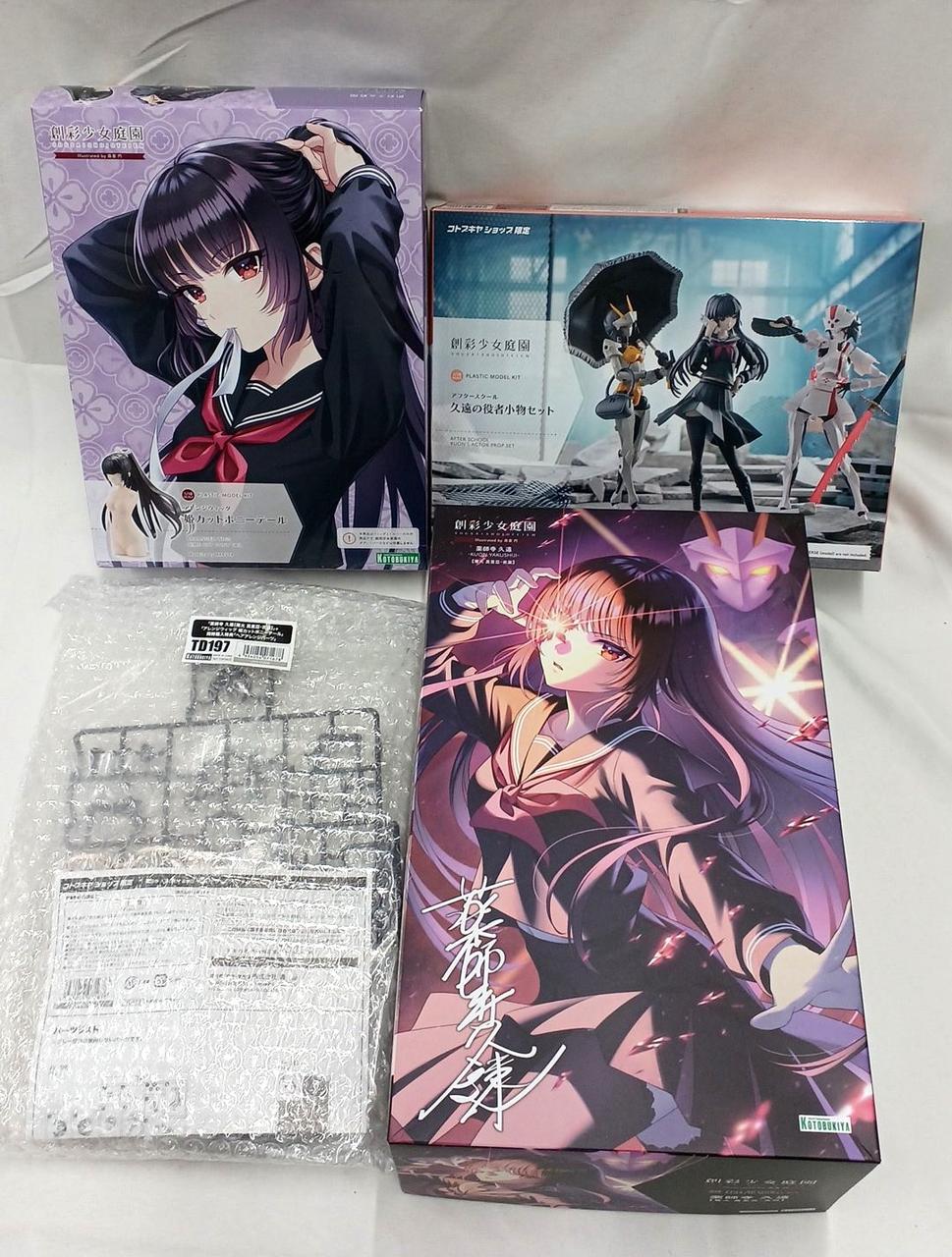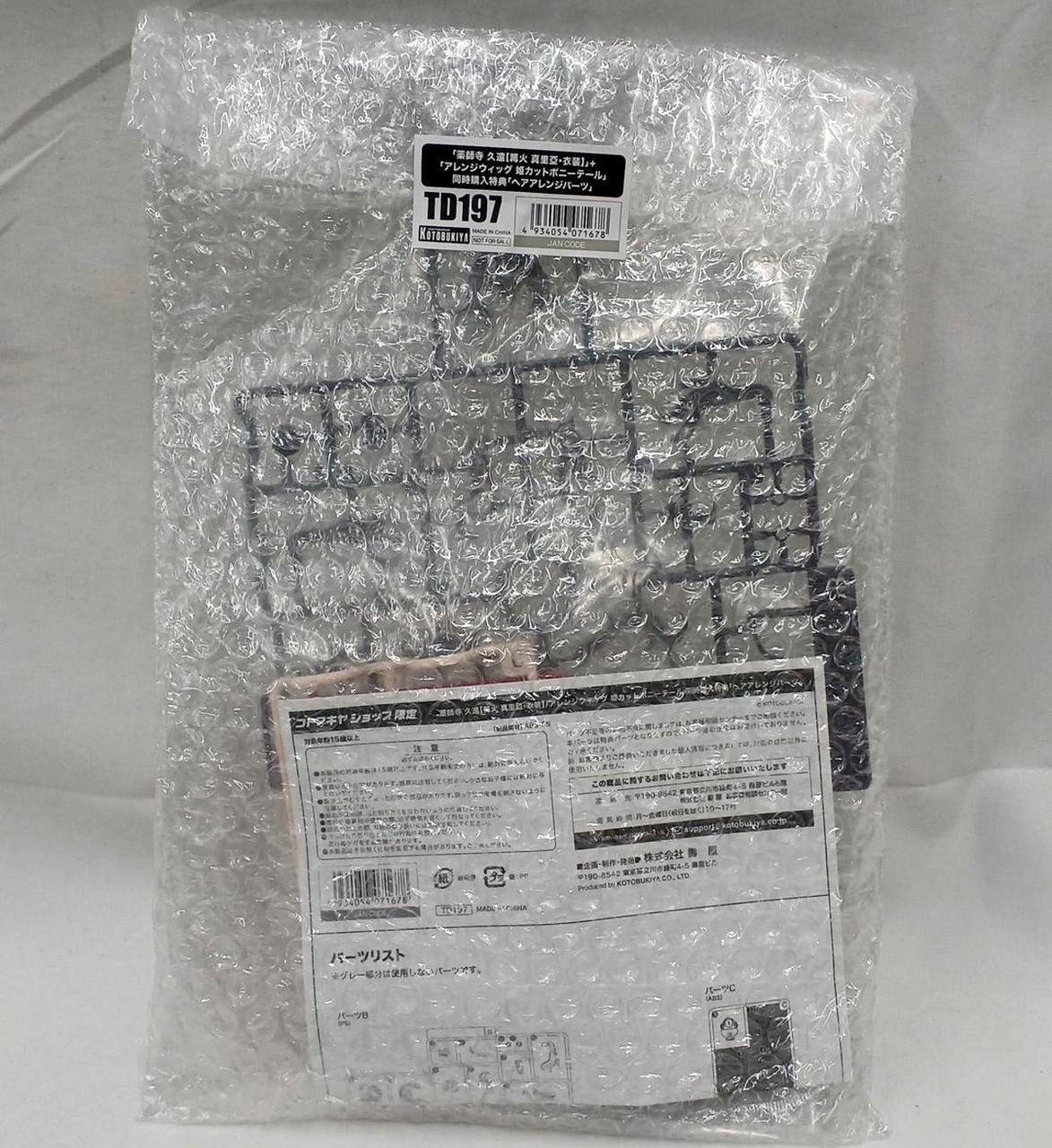「薬師寺 久遠 篝火 真里亜・衣装」「久遠の役者小物セット」「姫カットポニーテール」「コトブキヤ限定特典・ヘアアレンジパーツ」のセットです。 |