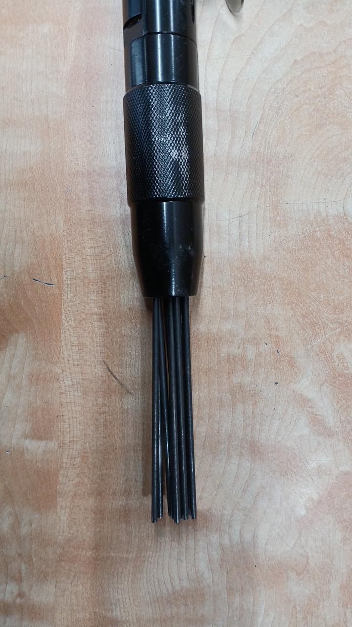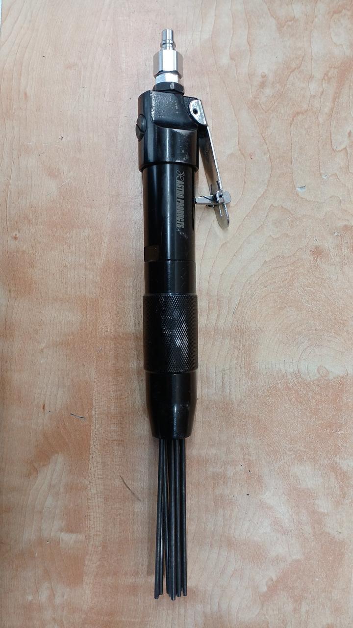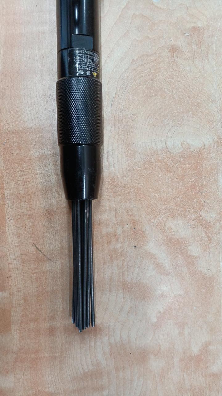 複数の針状タガネを高速振動させ、塗装剥がし、サビ落とし、溶接スラグ除去などを簡単・スピーディーに行え |