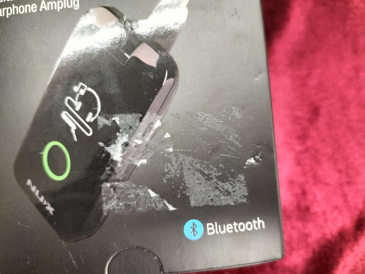 箱に潰れやシール跡があります。 |