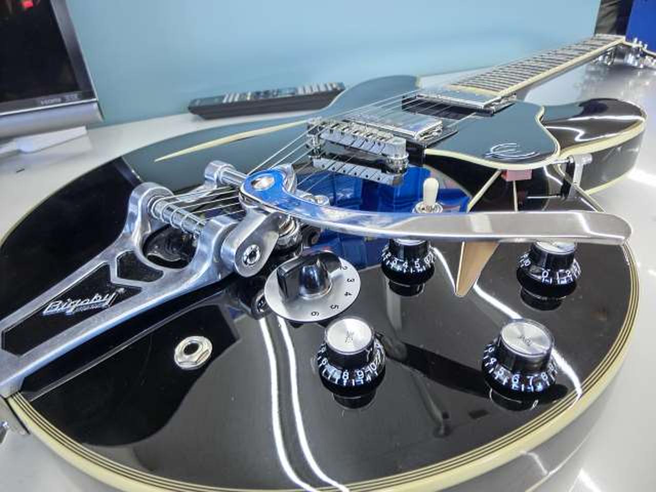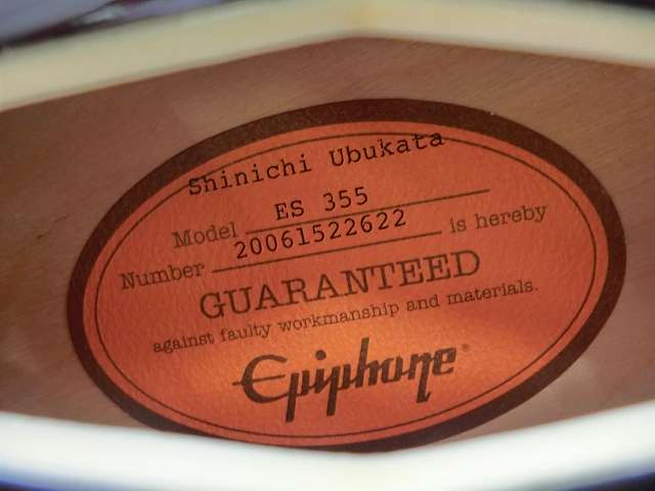 エピフォン セミアコ生形 真一のシグネチャー・モデル ES-355です。背面、他多少のキズはありますが、比較的に状態はいいかと思われます。ハードケースに入れての発送になります。 |