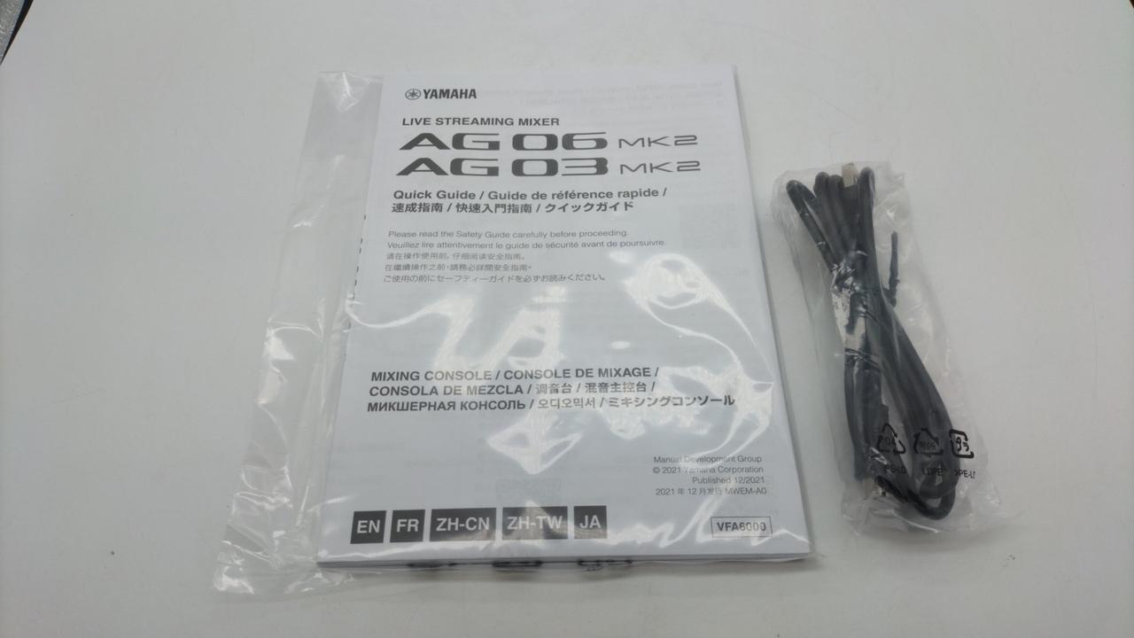 配信者のオーディオインターフェイスとして定番のYAMAHAのAGシリーズ マイクが2系統接続できるAG06の後継機 付属品:化粧箱 取扱説明書 接続ケーブル |