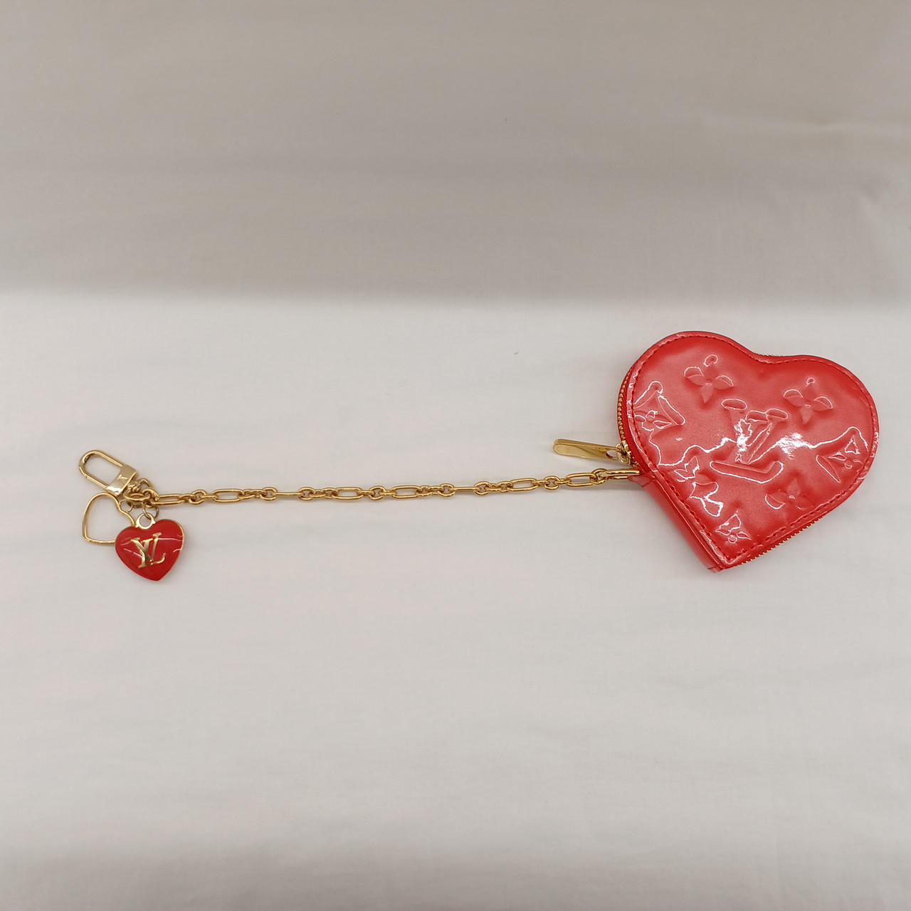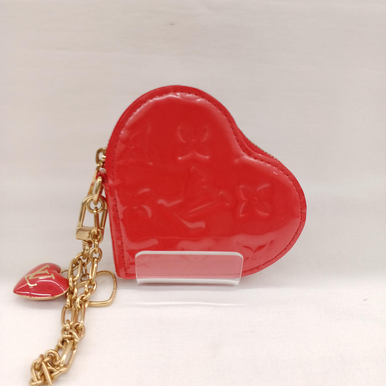 モノグラムのエナメルなヴェルニのハートコインケースです。中に汚れがありますが、外見はきれいです✨