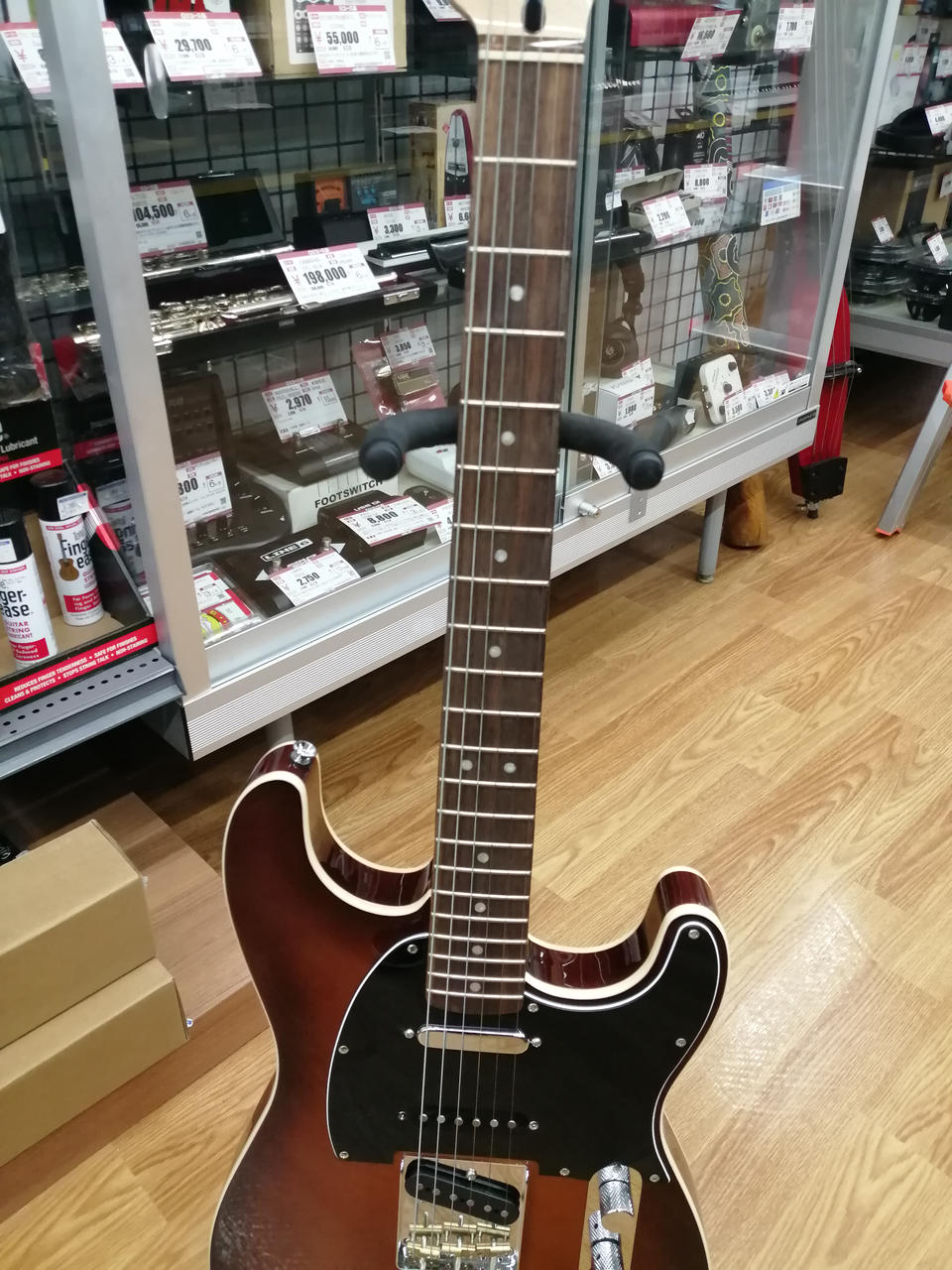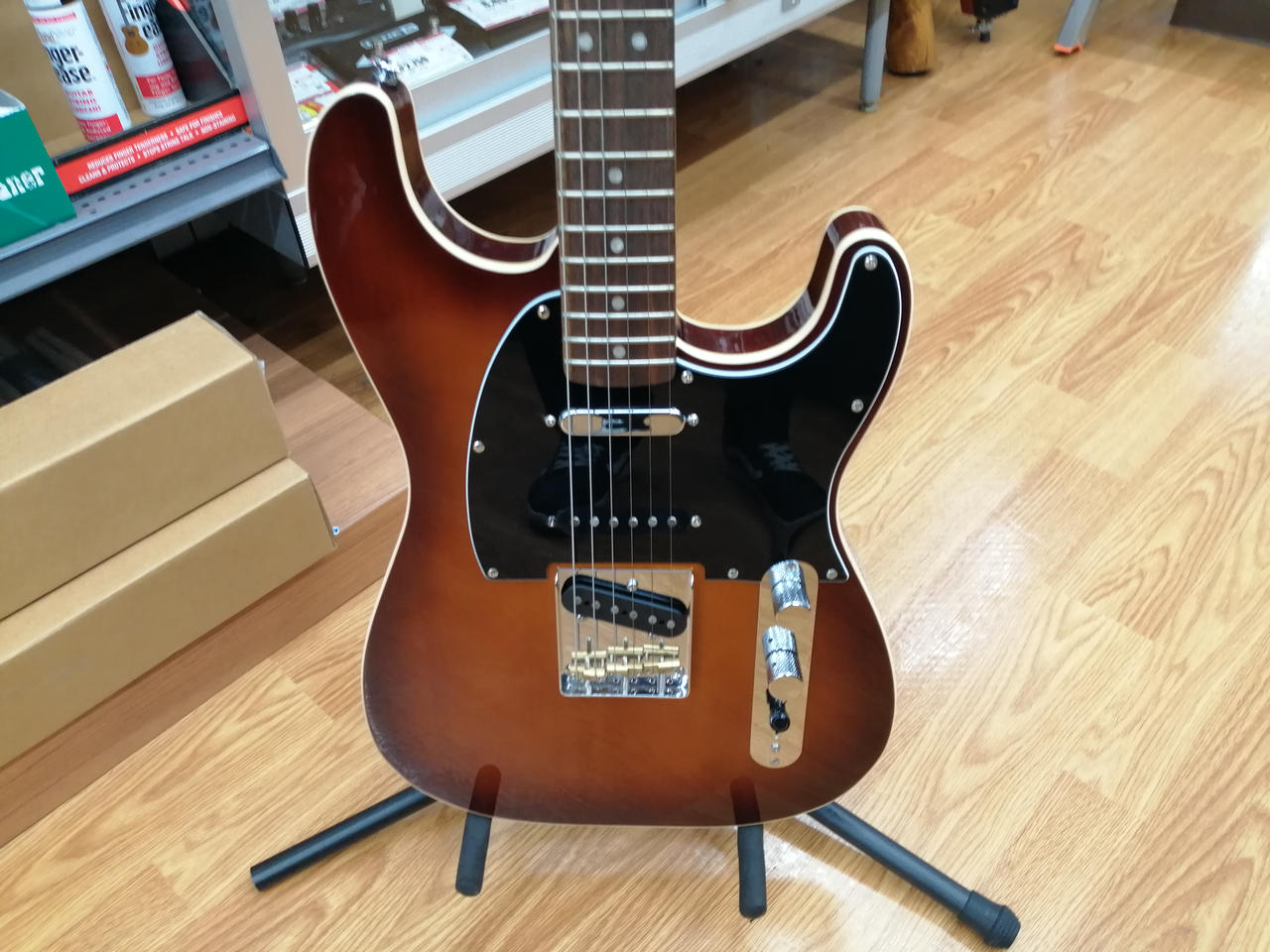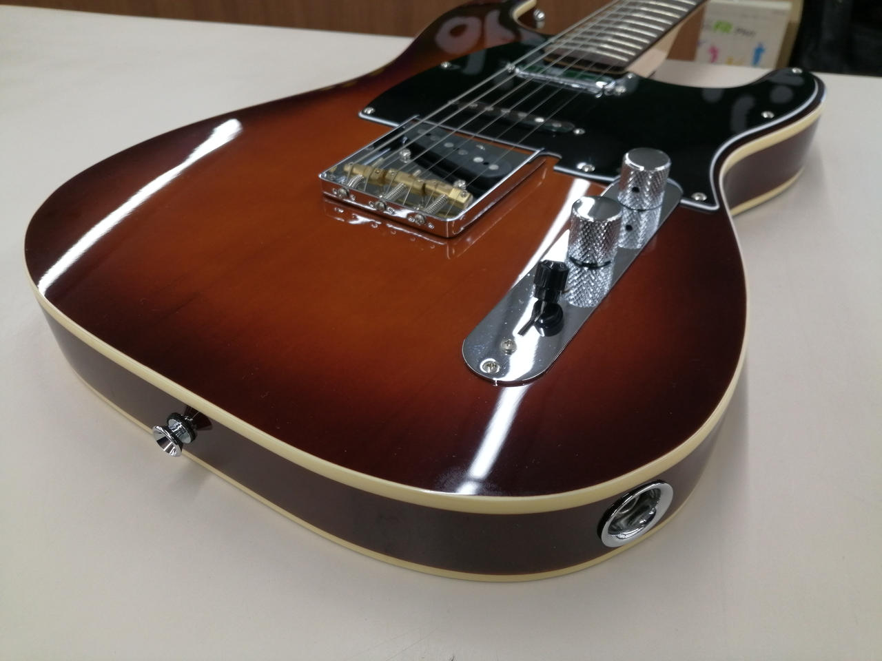 テレキャスターカスタムのようなバインディングとナッシュビルテレキャスターのPUをストラトボディに組み合わせたモデル |