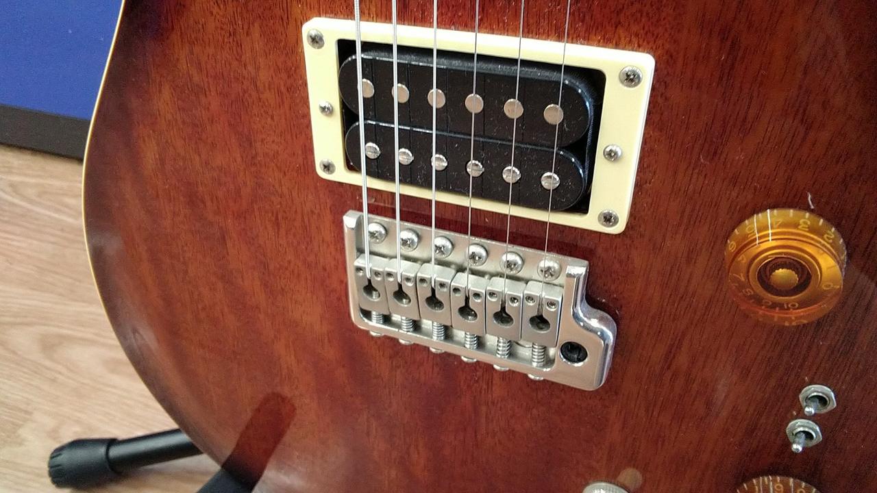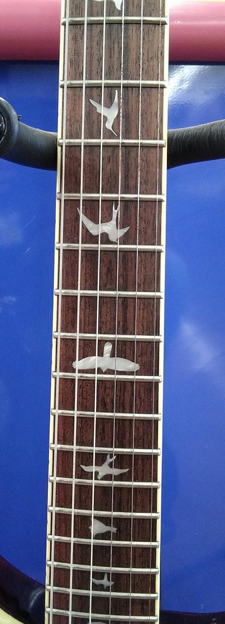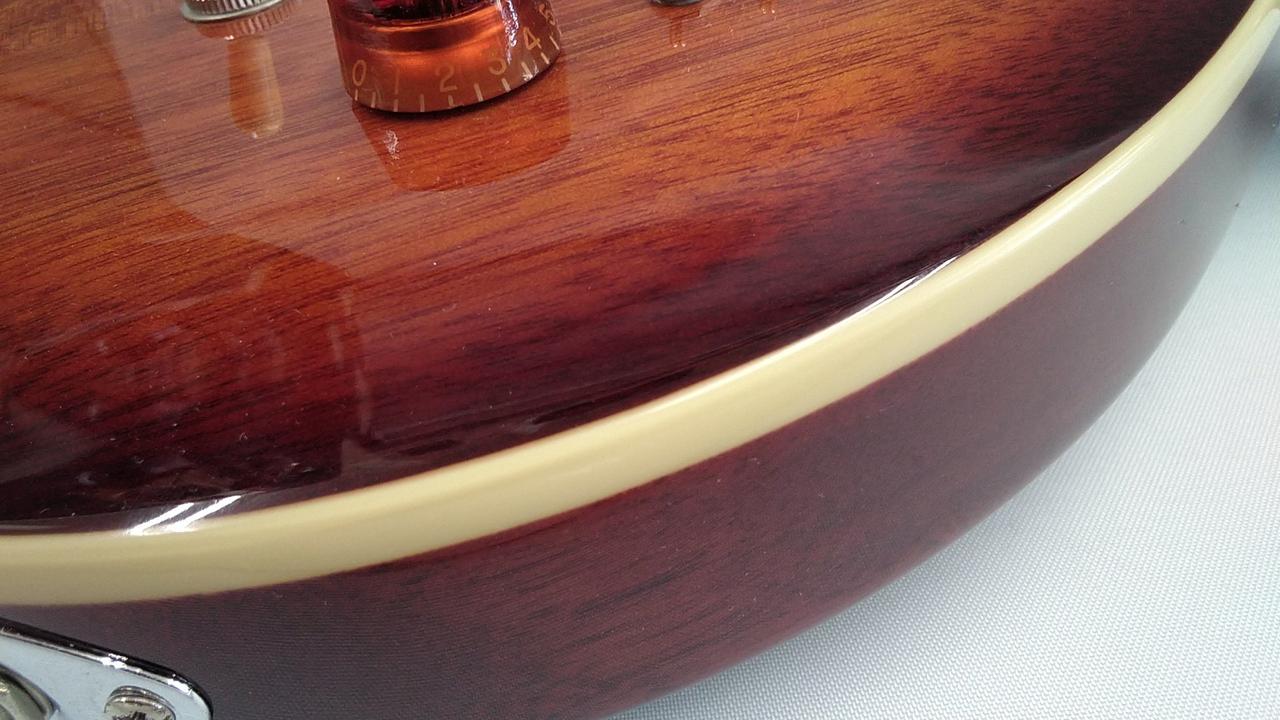 マホガニーのみのシンプルなボディ構造ながら、セルバインディングやバードインレイなどCustom24を彷彿させるルックス。 |