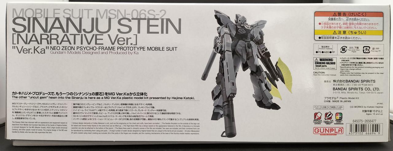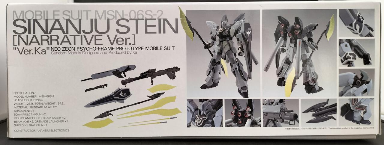 RX-0シリーズへと連なるフル・サイコフレームMSの「原石(スタイン)」となったMS。ナラティブバージョンのデザインに更新されVer.Kaで登場。『袖付き』の所以であるジオンの紋章を象ったエングレービングはパーツ分割で色分けを再現。ビーム・アックスは連結して長大なビーム・ナギナタとして装備でき、シールドに装着したままビームパーツを展開することも可能。ハンドパーツには“エモーション・マニピュレーターSP”を採用、各指が独立可動する。脚部フレキシブル・スラスターはリフトアームにより独立して動かすことができる。コクピットハッチの開閉、胸部ブロックの上下可動を再現。ゾルタン・アッカネンのフィギュアは座り・立ちの2種が付属。 |