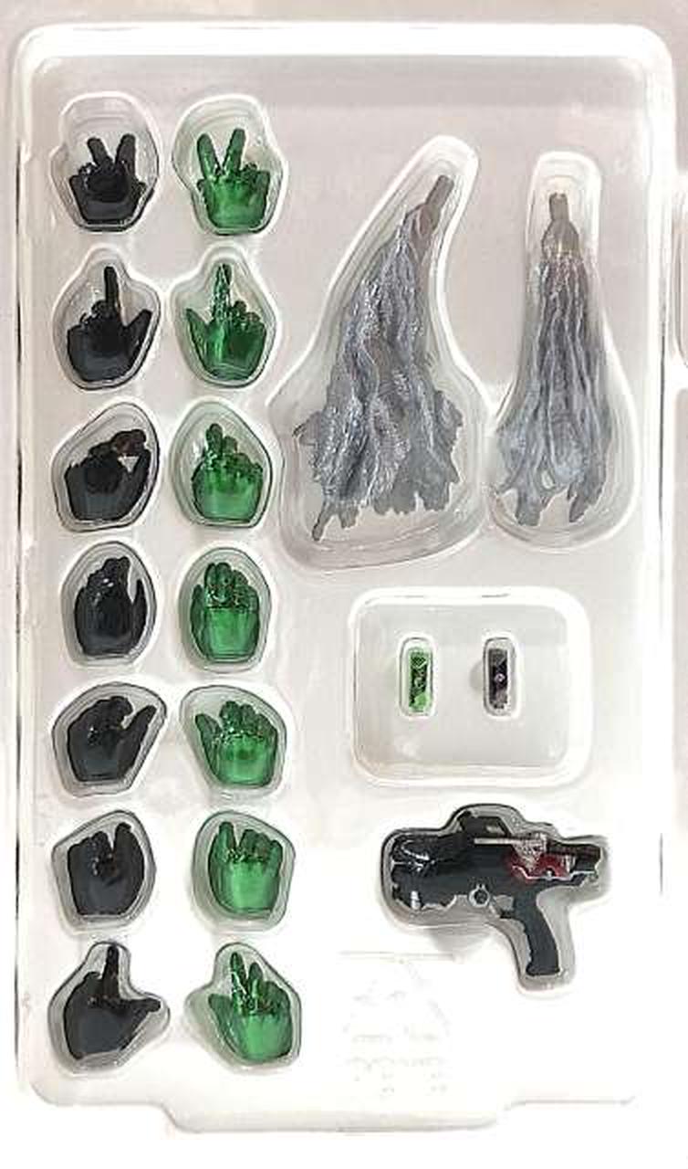 「サイクロンスカル」専用のポーズ手首や、「S.H.Figuarts ハードボイルダー」(別売り、受注終了)に搭乗するための手首パーツも付属し、劇中同様のポージングを楽しめる。 |