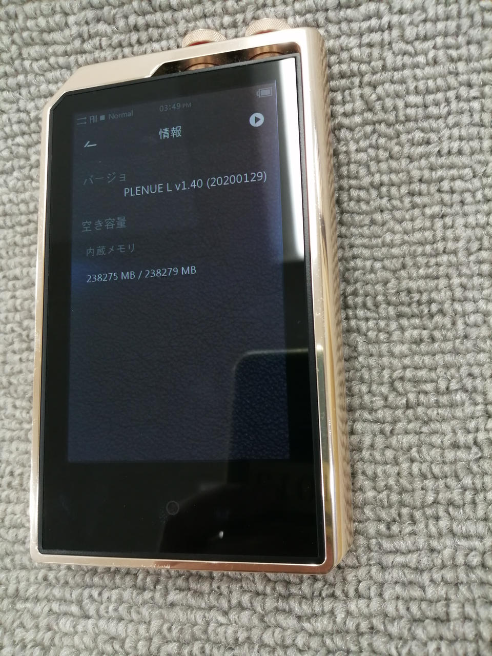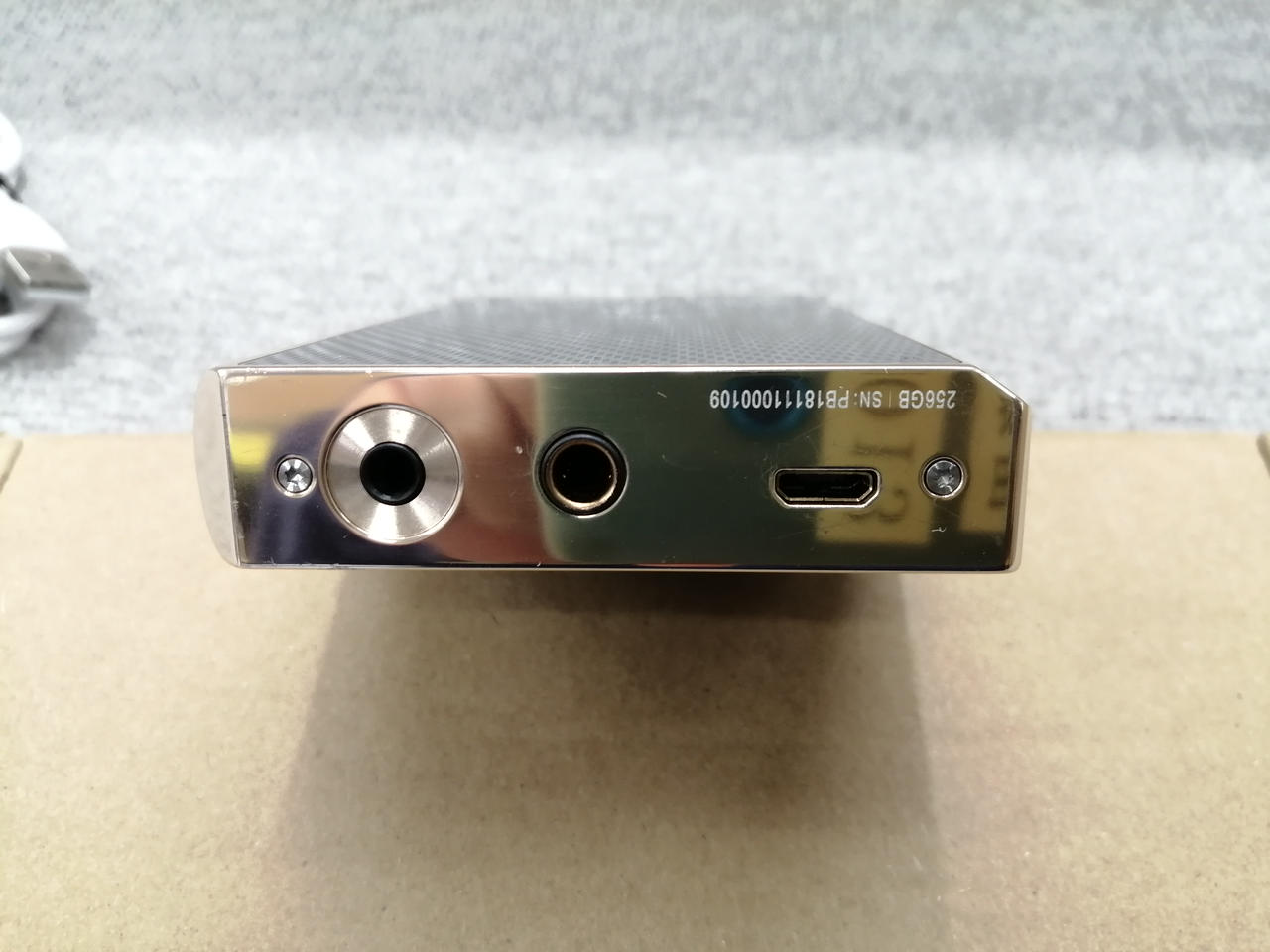 記憶媒体:内蔵メモリ(256GB)・microSD/インターフェイス:microUSB2.0/再生時間9時間/DSD256 (DSD 11.2MHz)/サンプリング周波数:384kHz/カラー:ブラスゴールド |