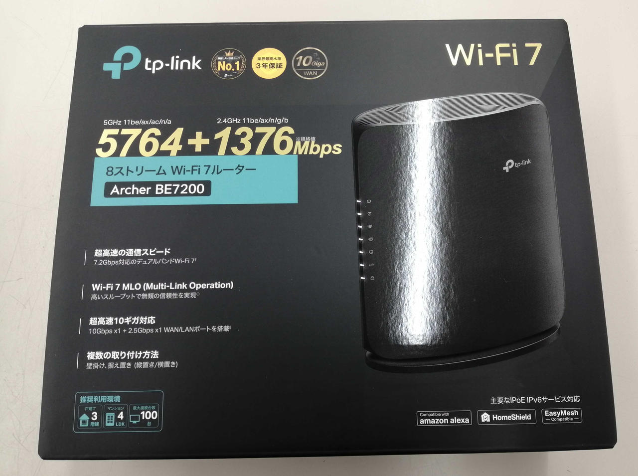 無線LAN規格:WI-FI 7 (11BE) 接続環境:3LDK メッシュWI-FI:○周波数:2.4/5GHZ IPV6:○ セキュリティ規格:WPA/WPA2/WPA3 |