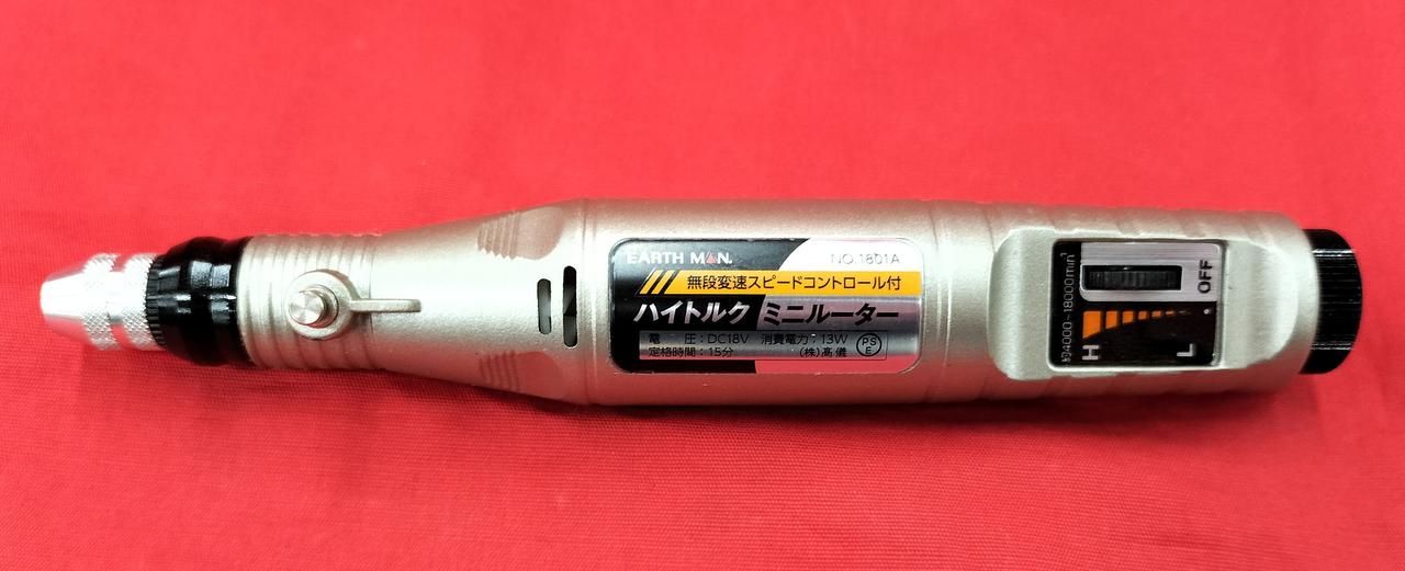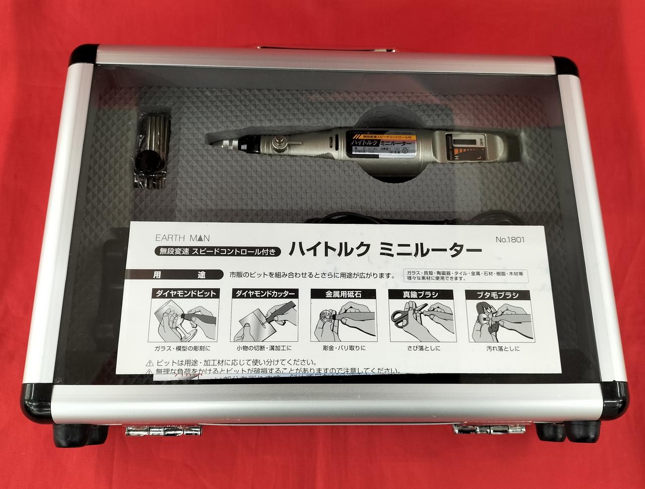 内容物:ルーター、充電器、ビット5本、置台、ケース |