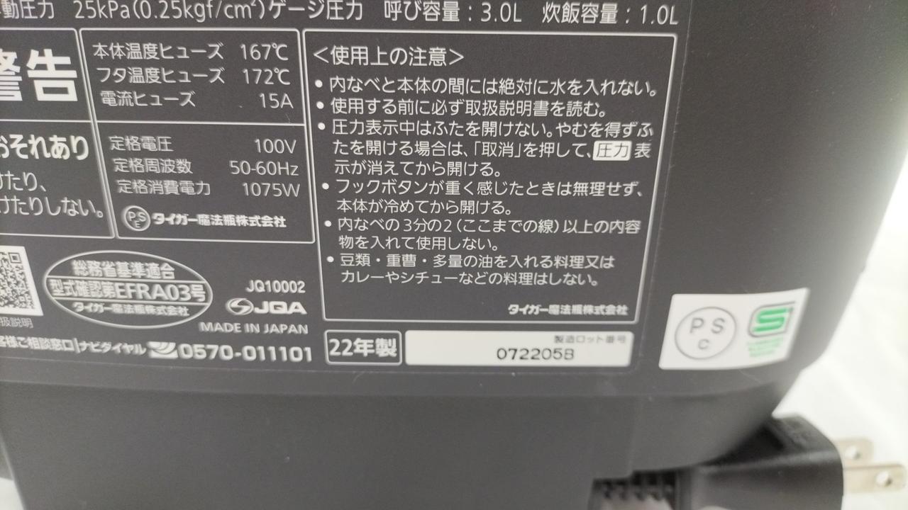 タイガーの圧力IH炊飯器入荷です♪