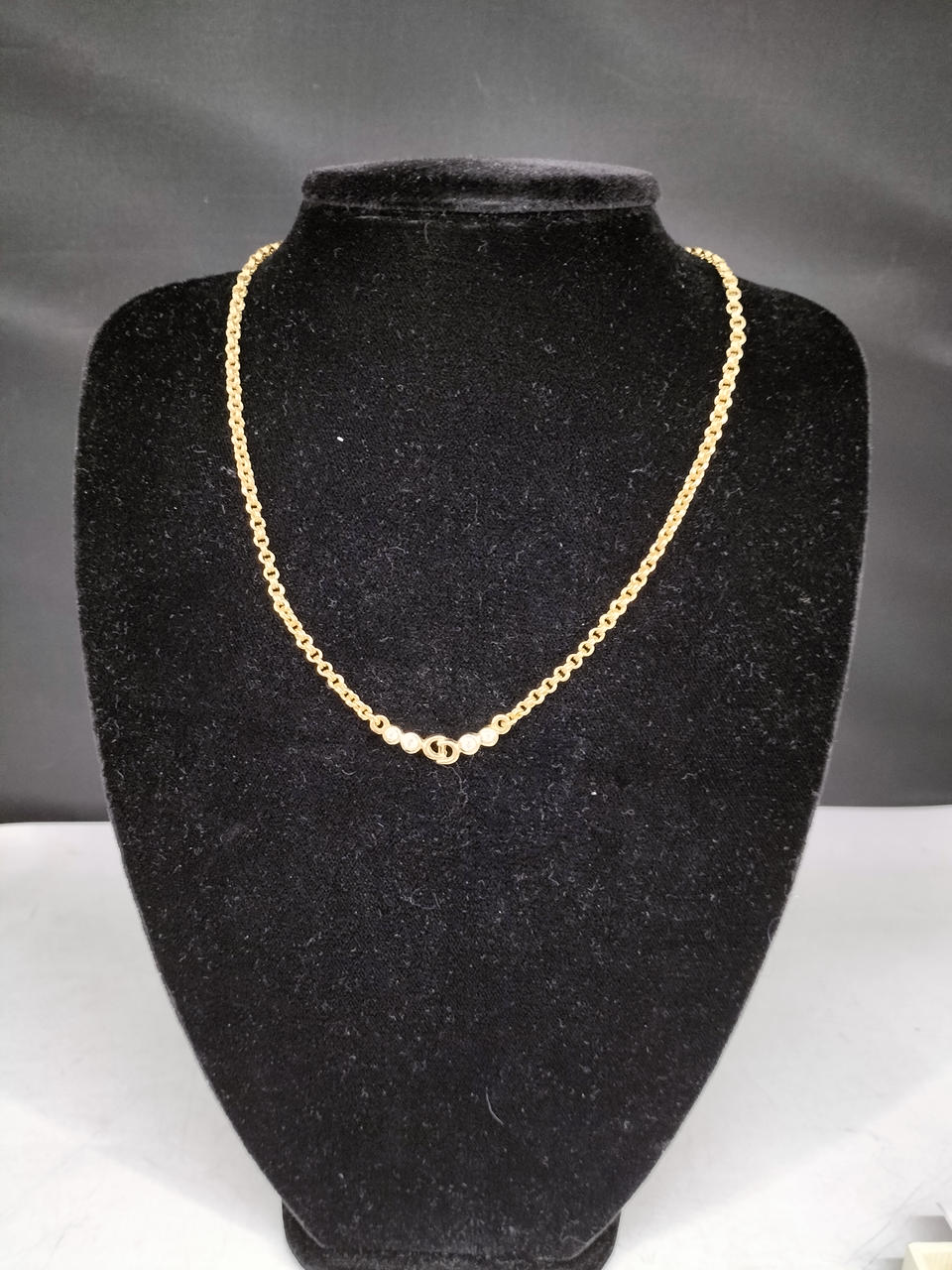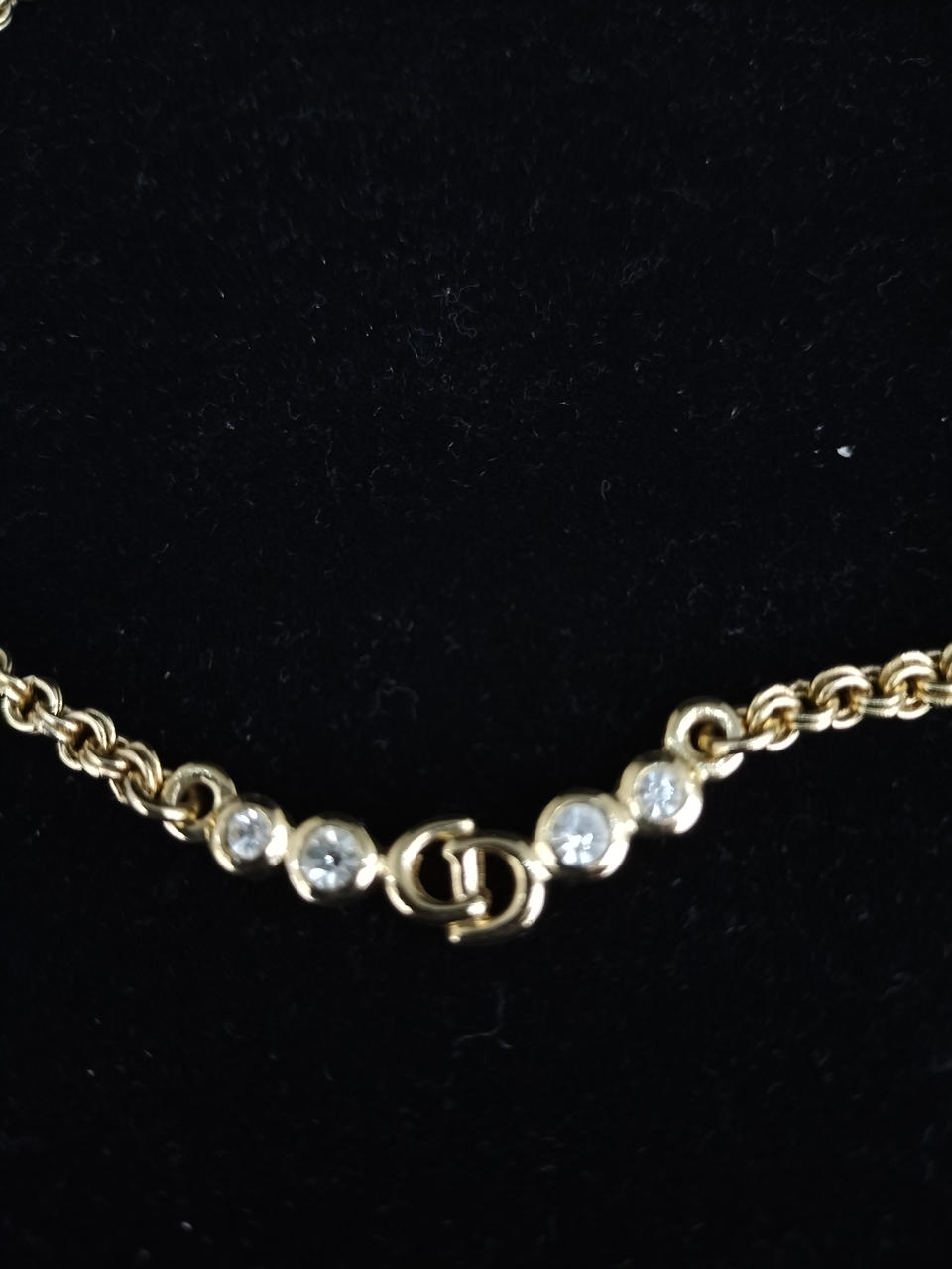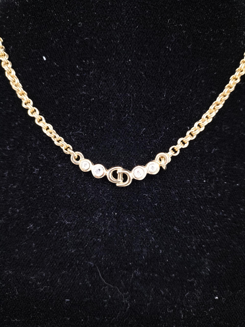 人気のヴィンテージディオールのネックレスです。太めなチェーンですので、パーティーシーンはもちろんセーターなどに着けても存在感があります。