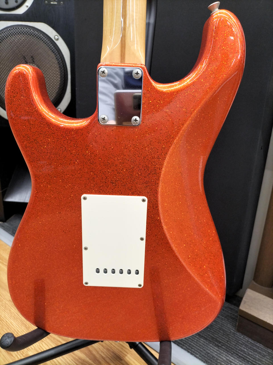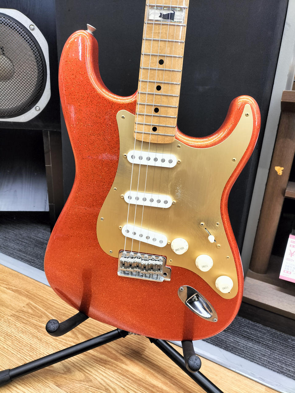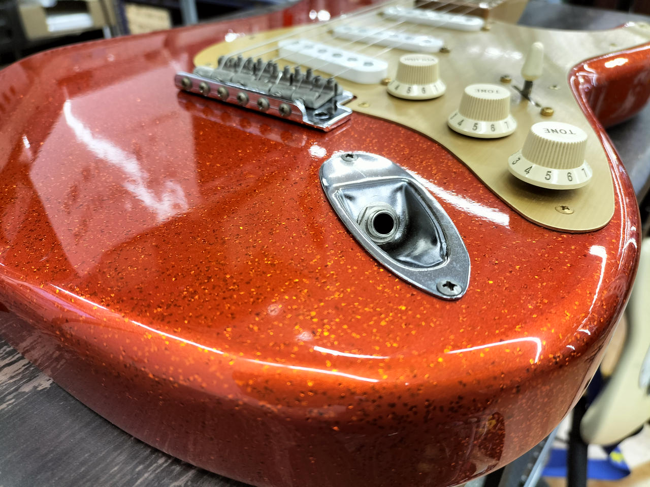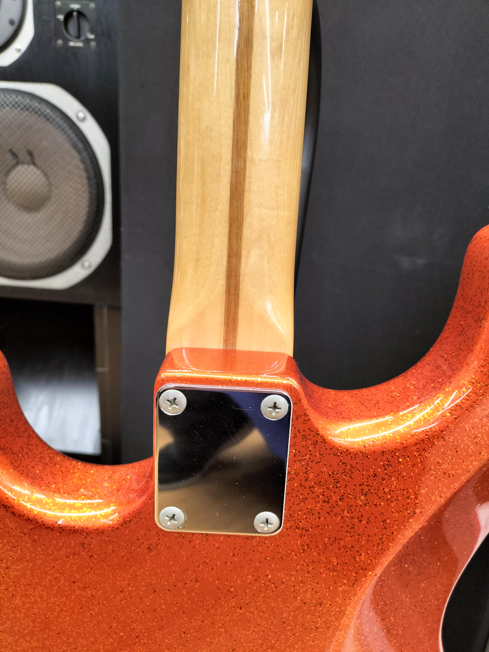 ド派手なスパークルオレンジです。トーンノブのスイッチでフロントPUをONに出来るシステムが特徴 |