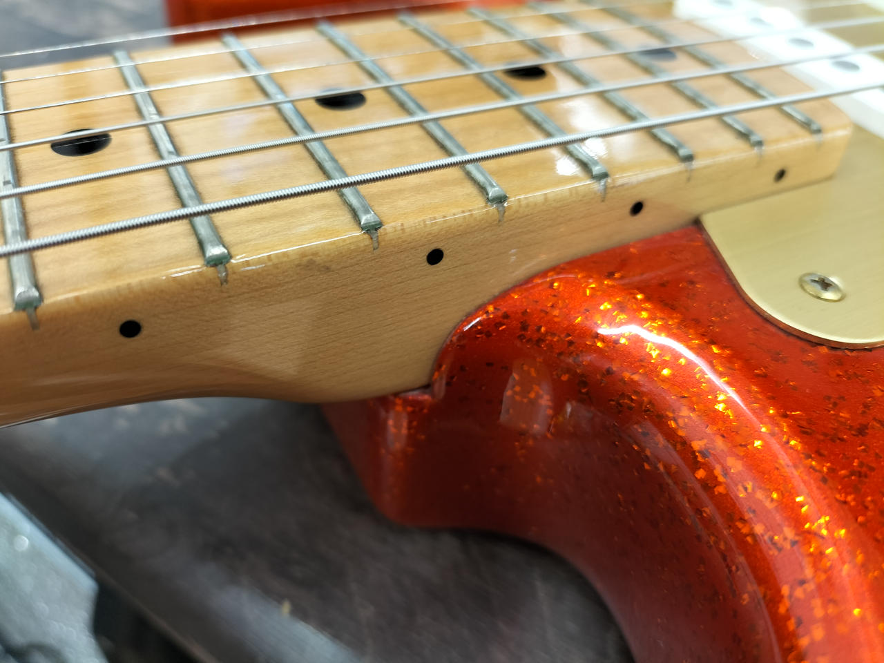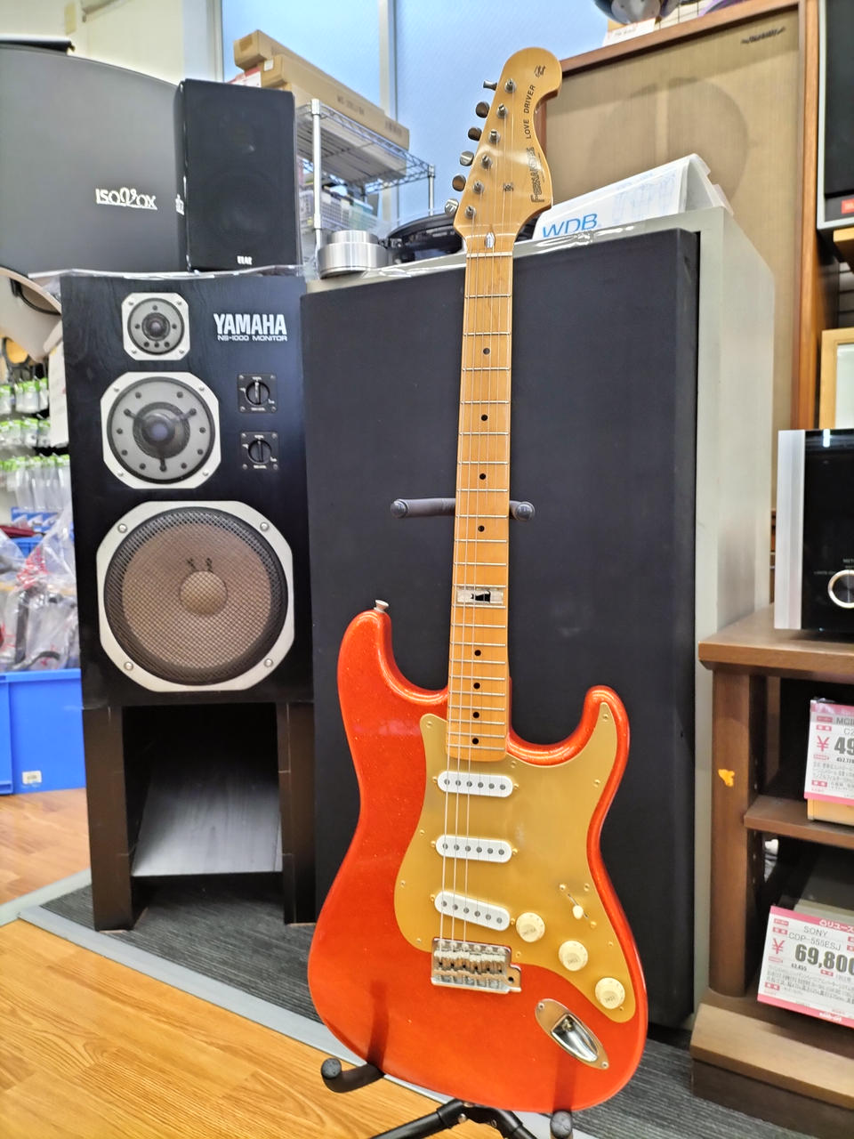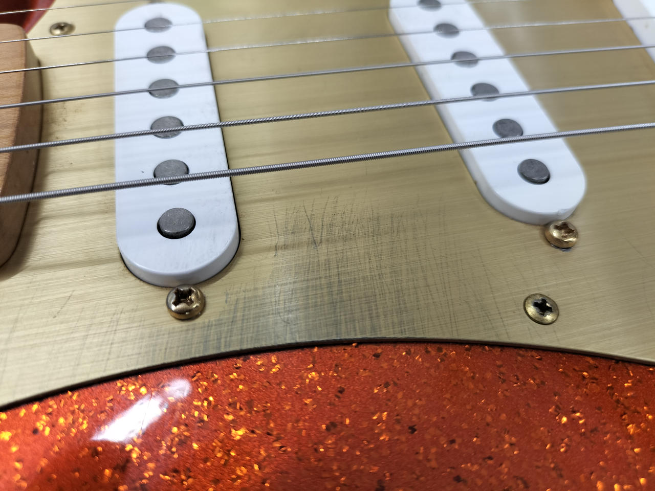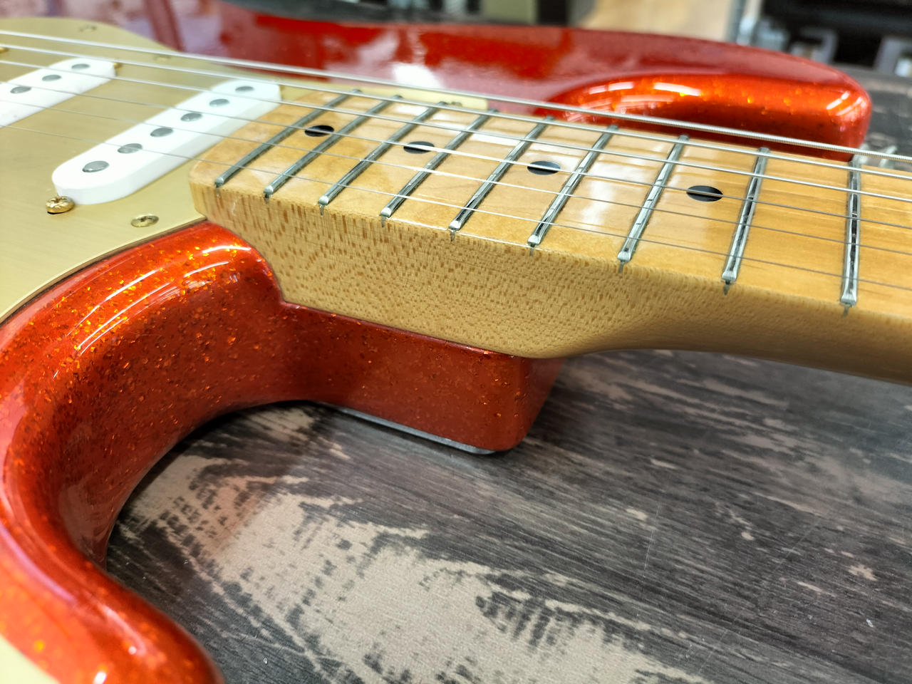 ド派手なスパークルオレンジです。トーンノブのスイッチでフロントPUをONに出来るシステムが特徴 |