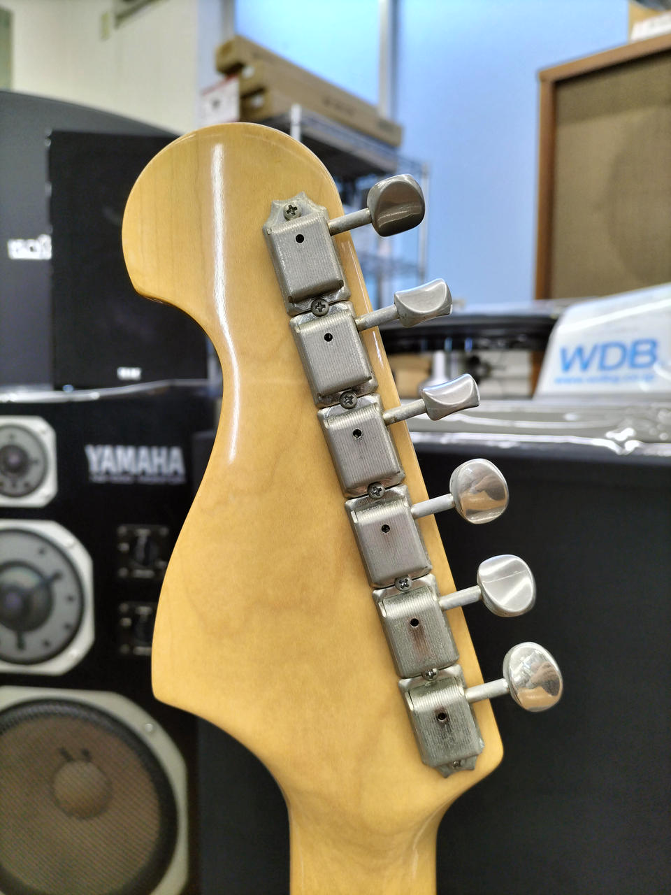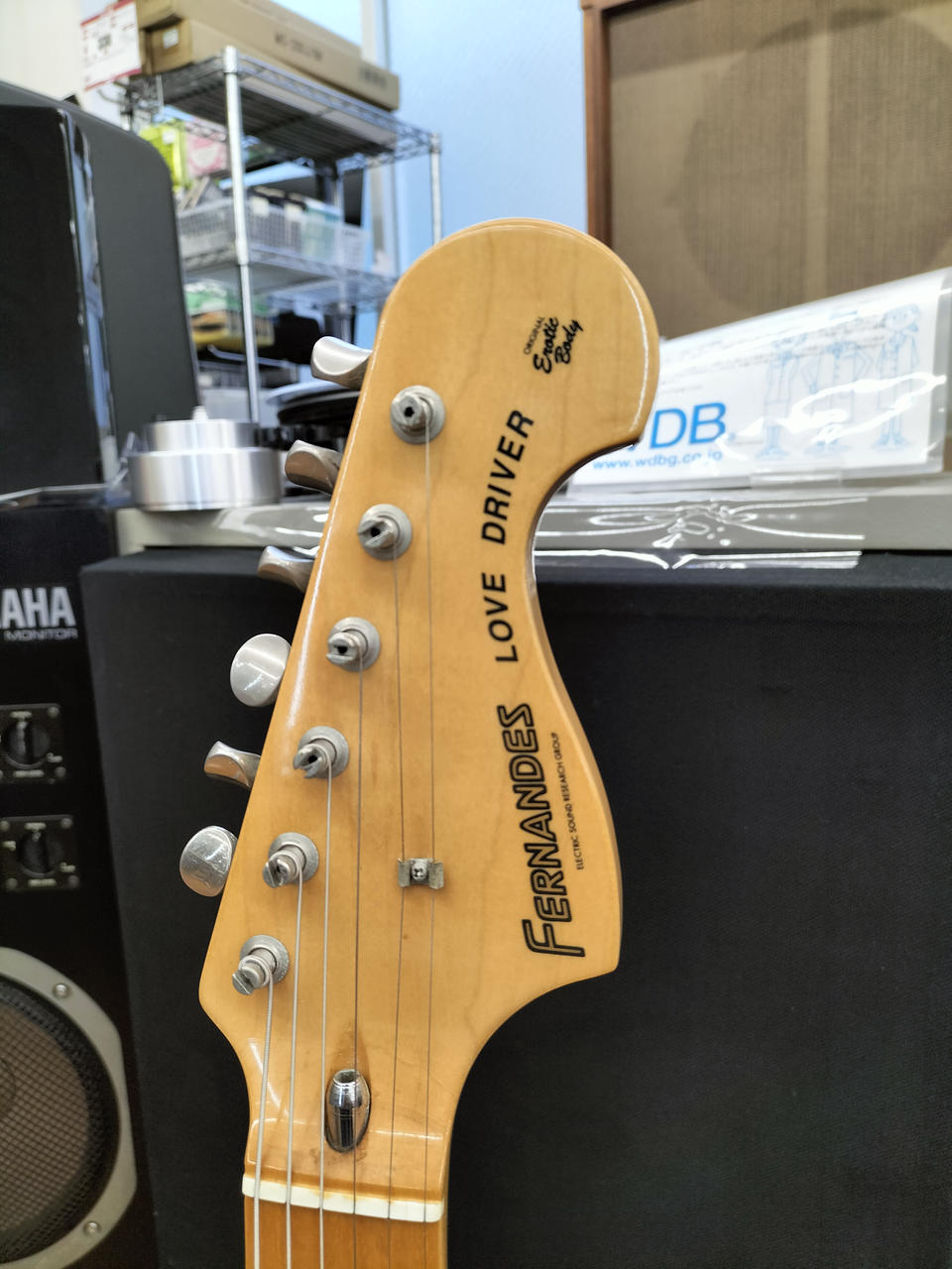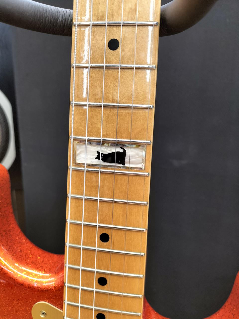 ボディは勿論アルミ製のゴールドピックガードと12フレットの猫ちゃんが目を惹く一本 |