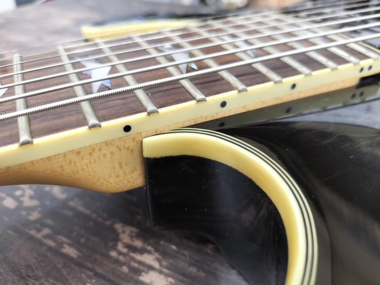 ボディ:キルトメイプルトップ、マホガニーバック ネック:メイプル、ボルトオン 指板:ローズウッド、24F |