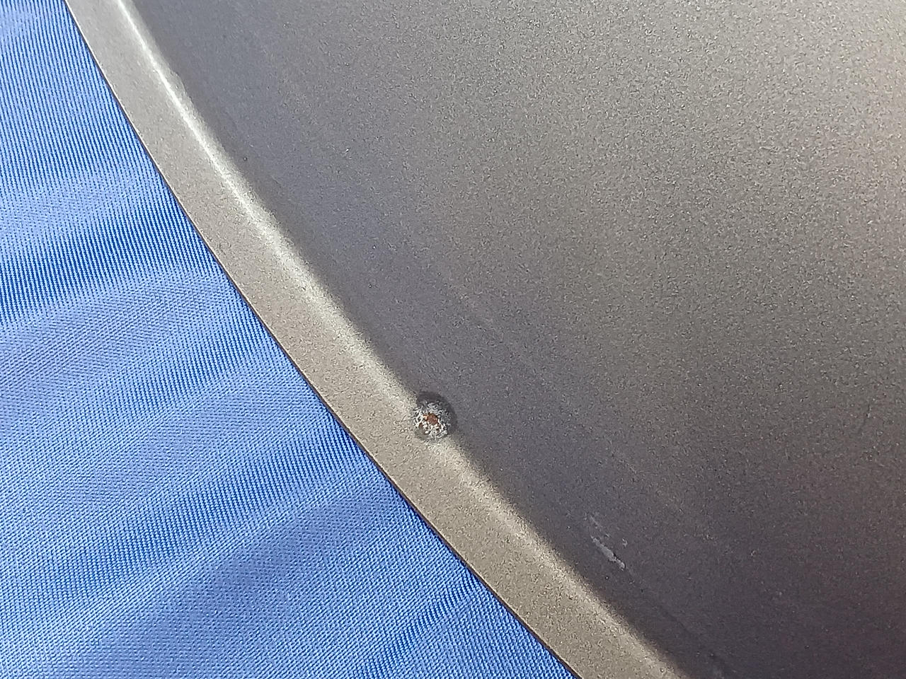 本体接合部の背面側に表面素材剥がれあり、本体同素材のカバーと専用ソフトケースが付属しています。 |