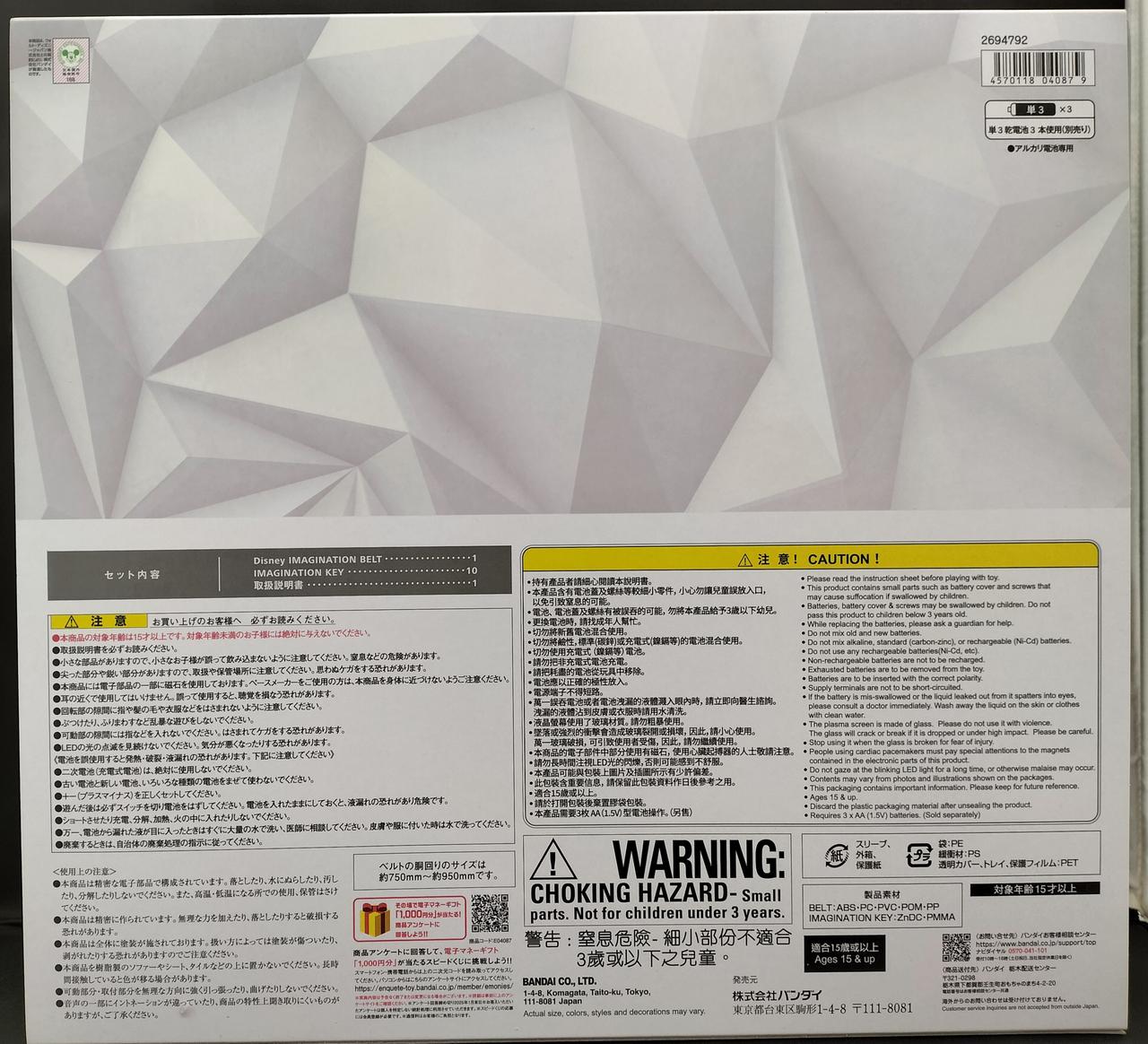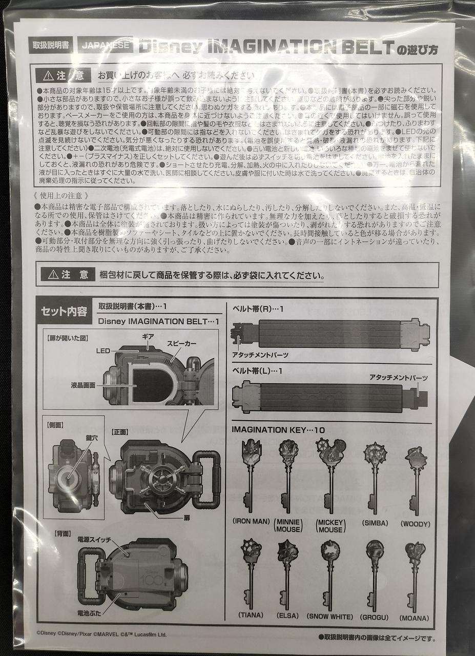 セット内容:Disney IMAGINATION BELT、ベルト帯(R)、ベルト帯(L)、IMAGINATION KEY×10(IRON MAN・MINNIE MOUSE・MICKEY MOUSE・
