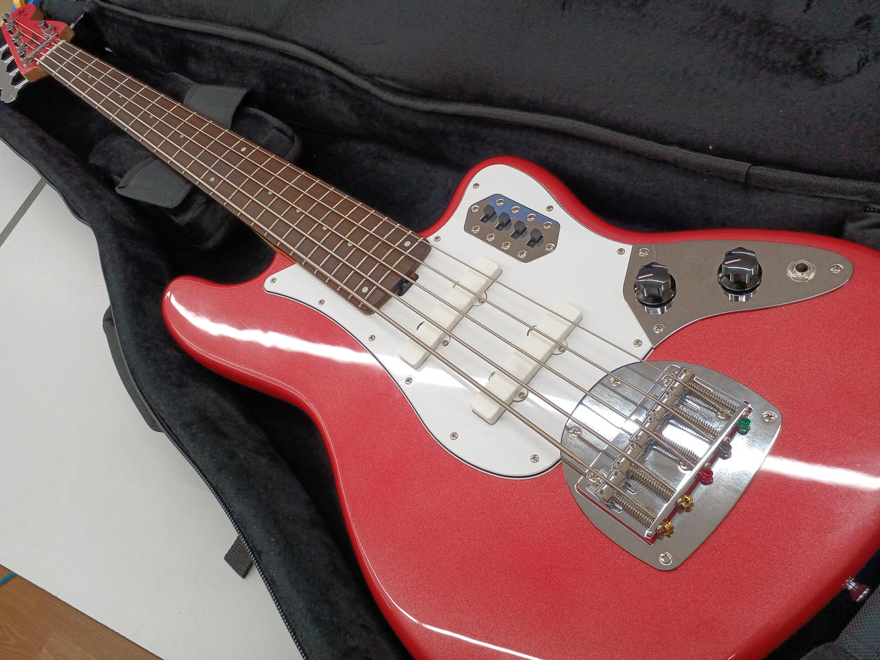 指板はローズウッドでSTELLA GEAR BASS V同様に24フレット仕様となっており、ックアップはEDWARDSオリジナルのEJ5-1をセットで搭載しています。 |