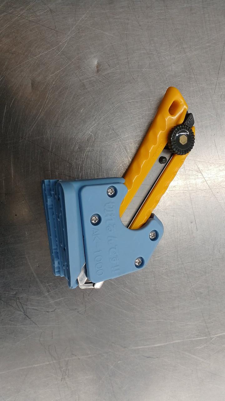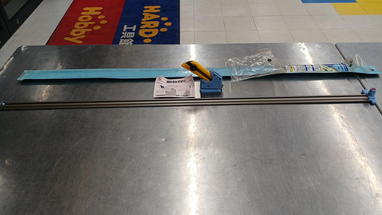 アルミ本体フラットバーの裏面には、ネオスポが貼ってあるので、ズレにくくまっすぐに切りやすいです |