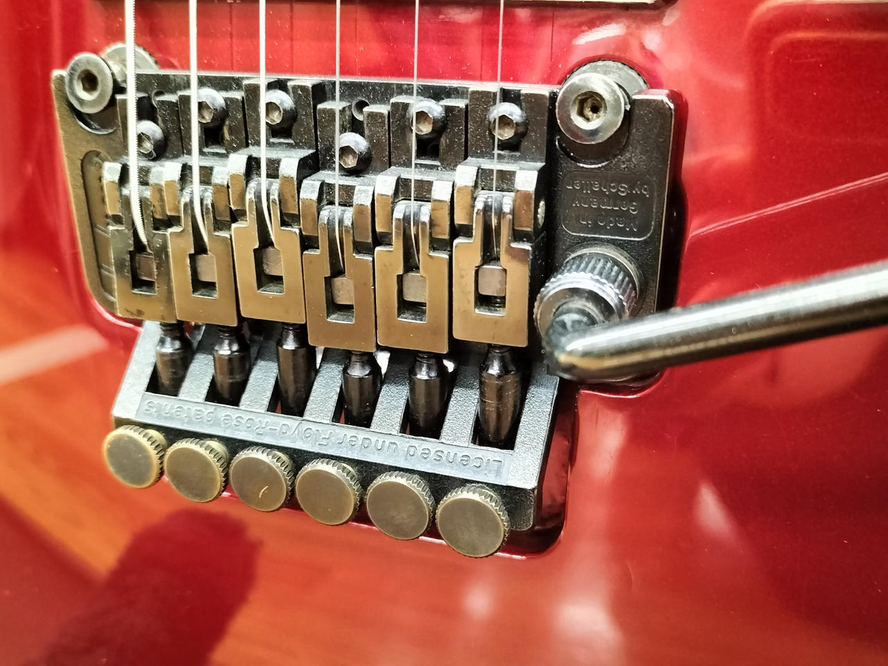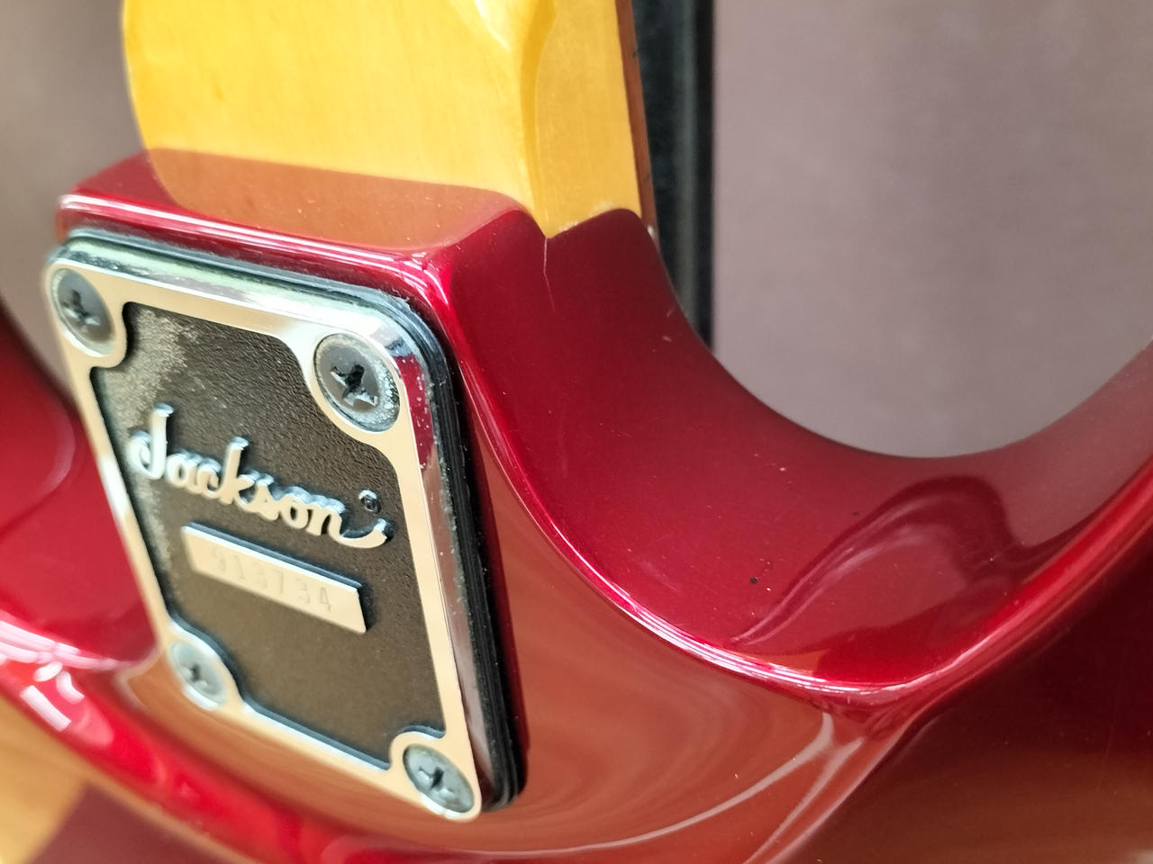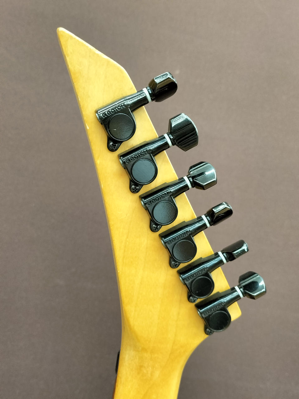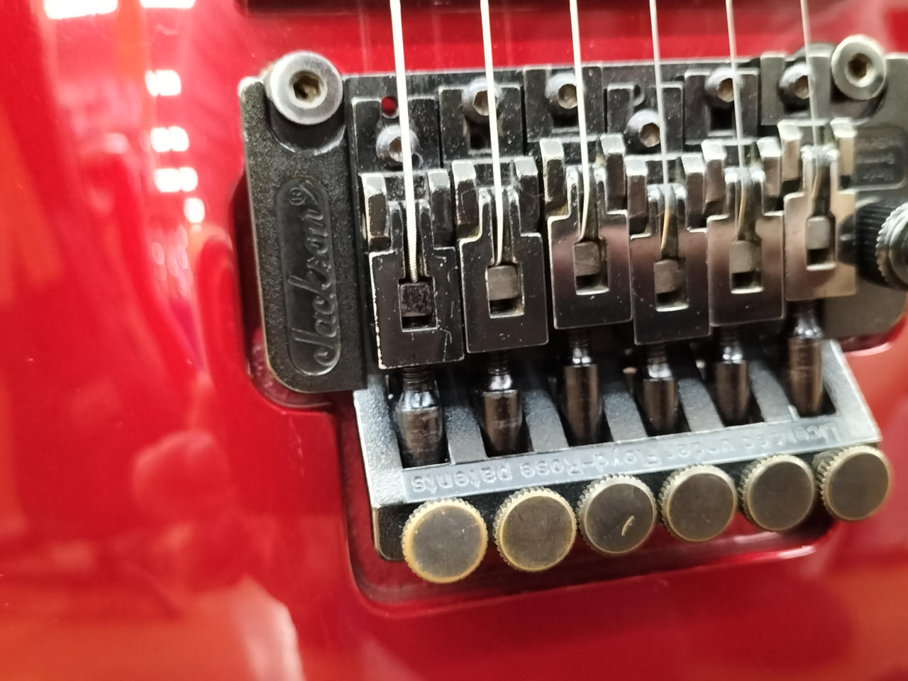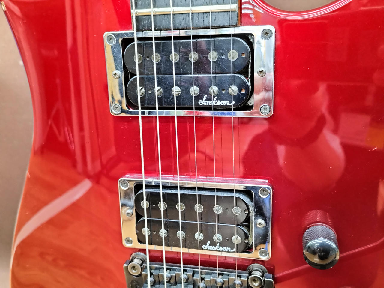 ハードロック/ヘヴィーメタルシーンを牽引してきたJACKSON!デカロゴ期の1本!SCHALLER製フロイドローズを搭載し、激しいアームプレイも難なくこなします! |