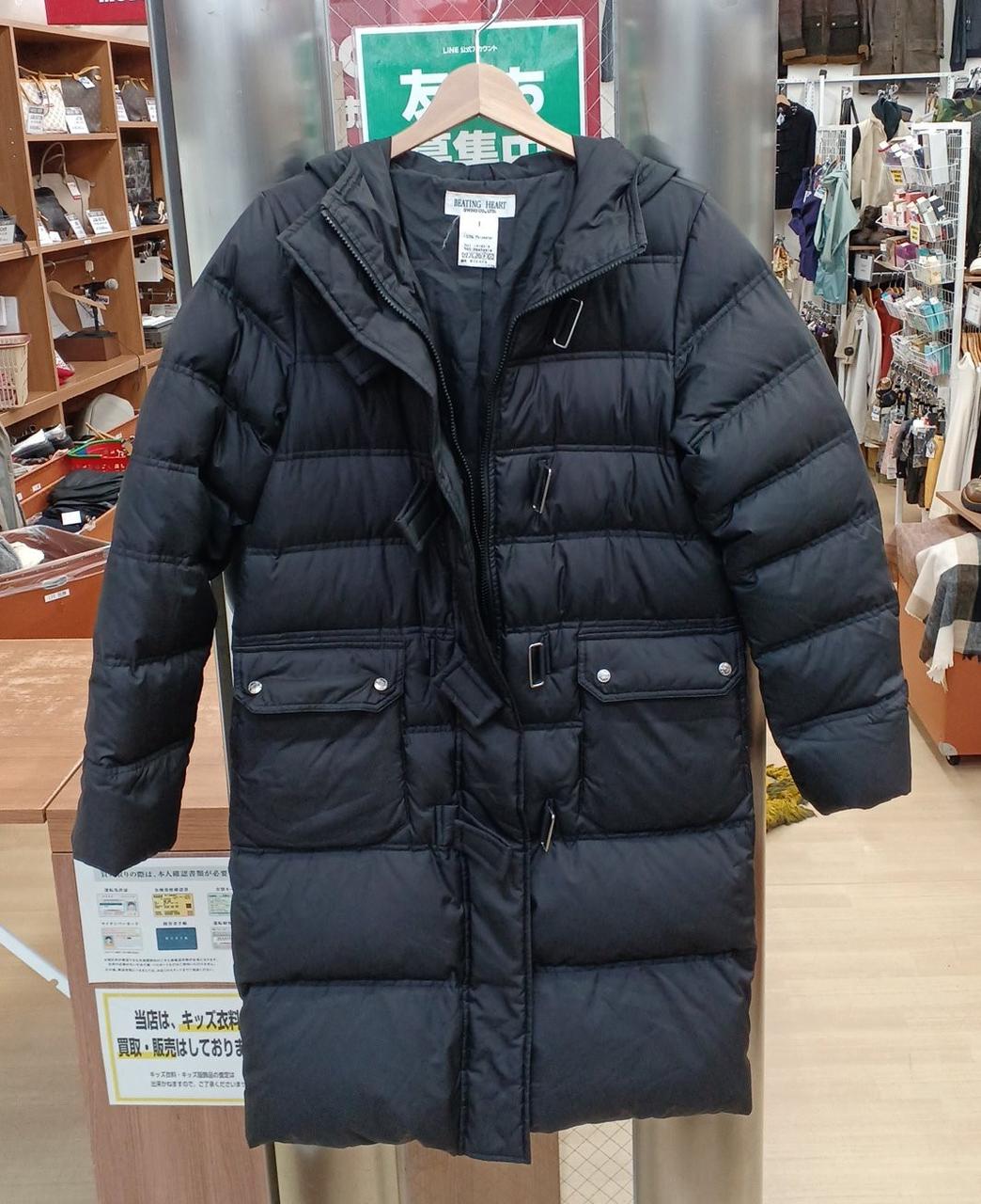 BEATING HEARTのダウンコートです。右前身頃下に小さな穴と後ろ下に小さなキズがあります。その他は目立った汚れなどは無くまだまだご着用して頂けるお品です。 |