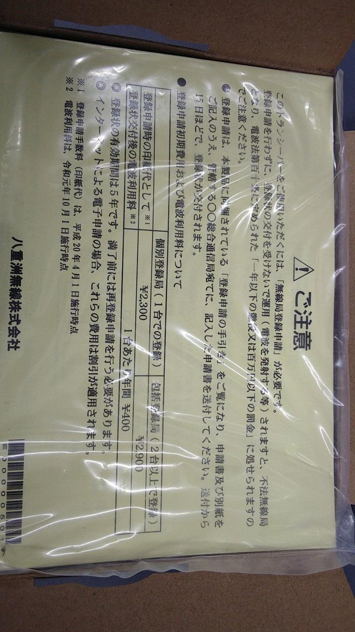 このトランシーバーをご使用になるには、無線局登録申請を行い、事前に交付を受けることが必要です。(資格不要ですが手続きが必要となっています。) |