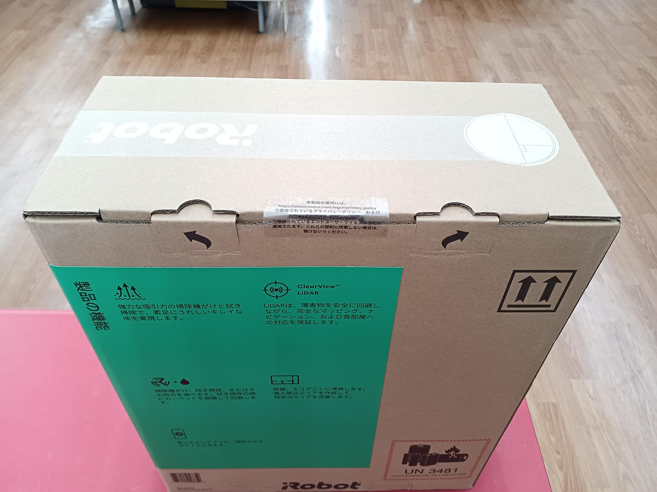 未使用品(確認の為底面から中の確認をしています。)掃除機がけと水拭き掃除に対応した、1~2人暮らし向けのロボット掃除機。 |