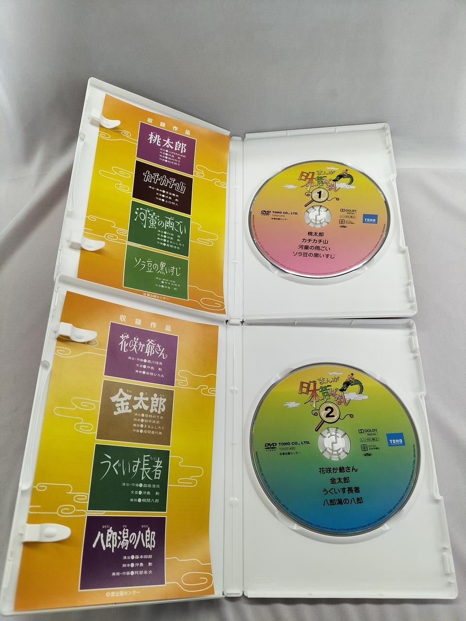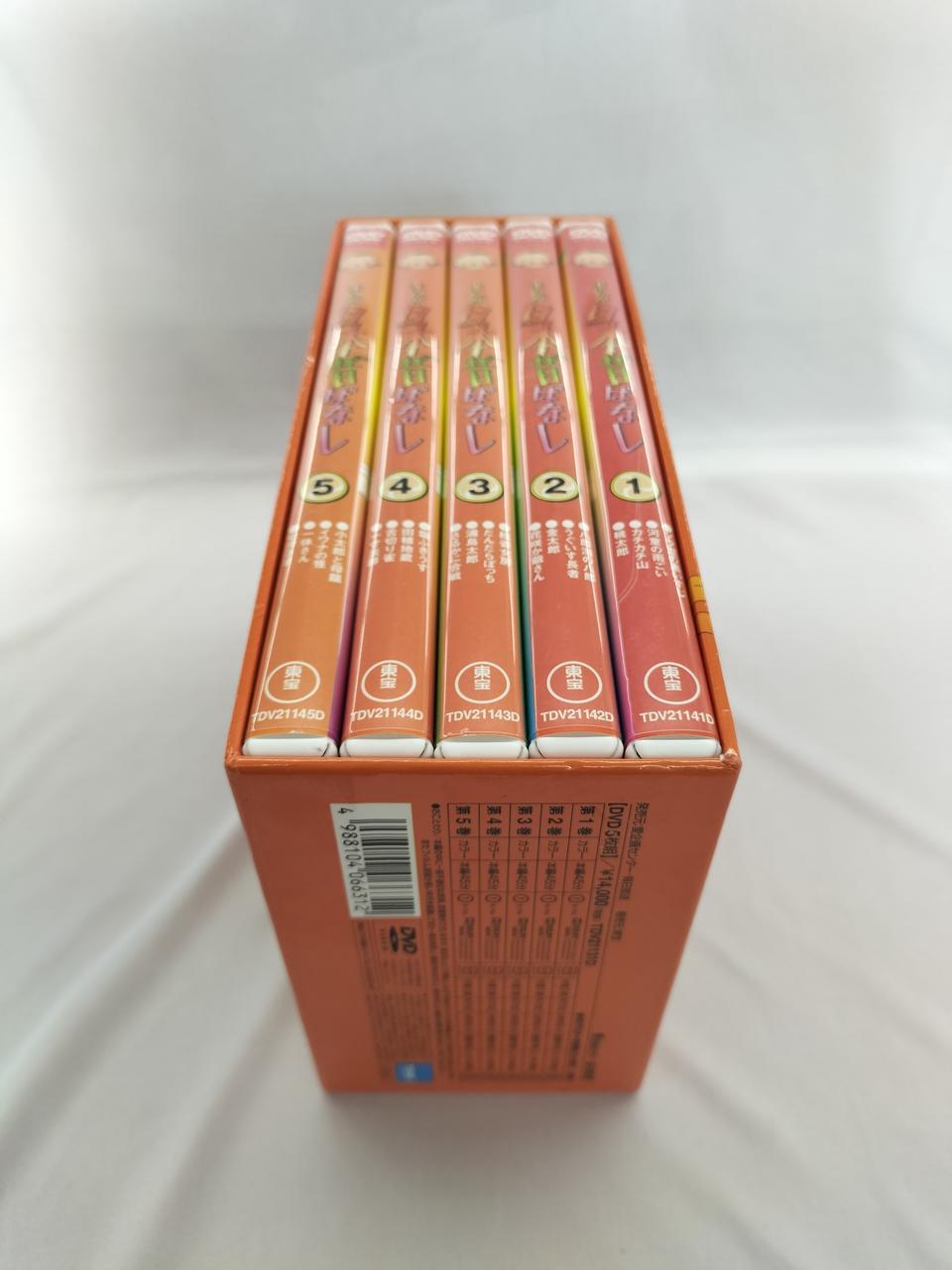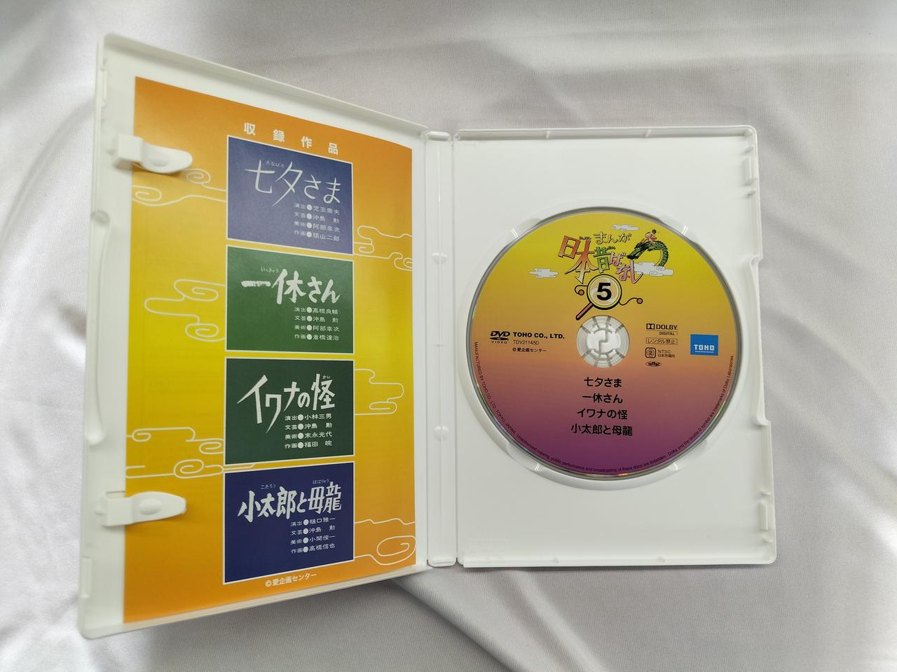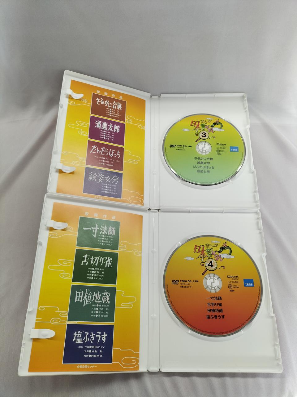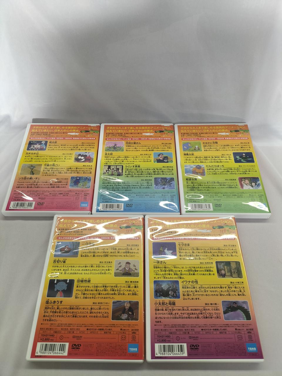 [1]桃太郎/カチカチ山/河童の雨ごい/ソラ豆の黒いすじ[2]花咲か爺さん/金太郎/うぐいす長者/八郎潟の八郎[3]さるかに合戦/浦島太郎/だんだらぼっち/絵姿女房[4]一寸法師/舌切り雀/田植地蔵/塩ふきうす[5]七夕さま/一休さん/イワナの怪/小太郎と母龍 |