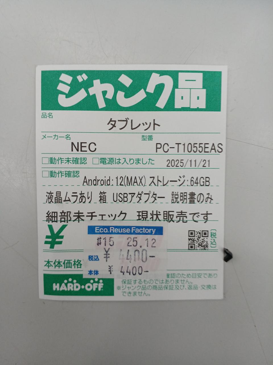 | 保証期間 | 保証なし |