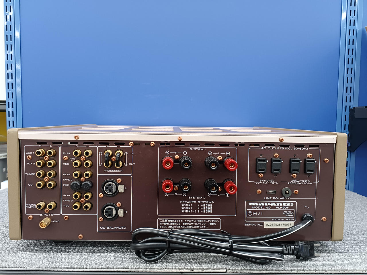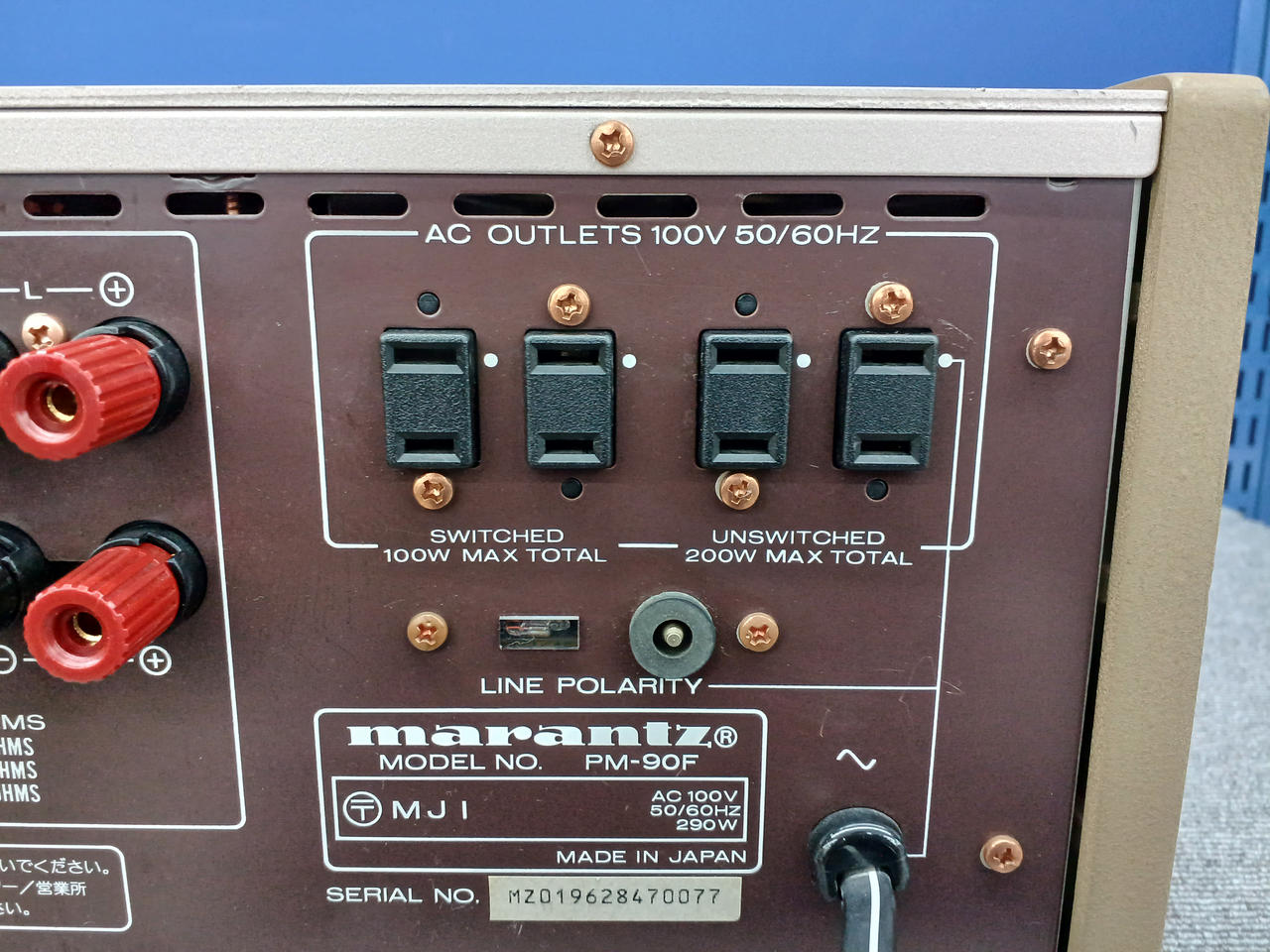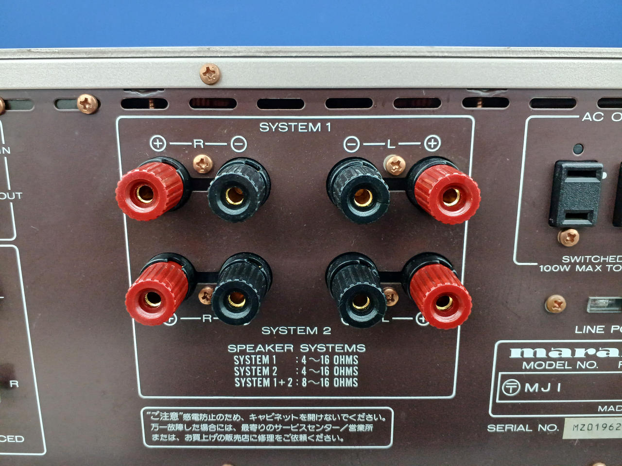 A級動作時:25W+25W(8Ω)、AB級動作時:180W+180W(4Ω)・130W+130W(8Ω) |