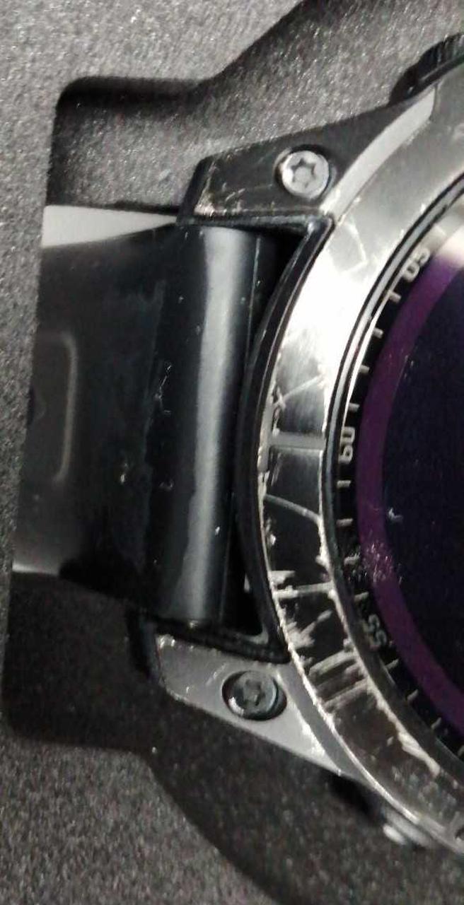 縁にキズ、ベルトに汚れがあります。 |
