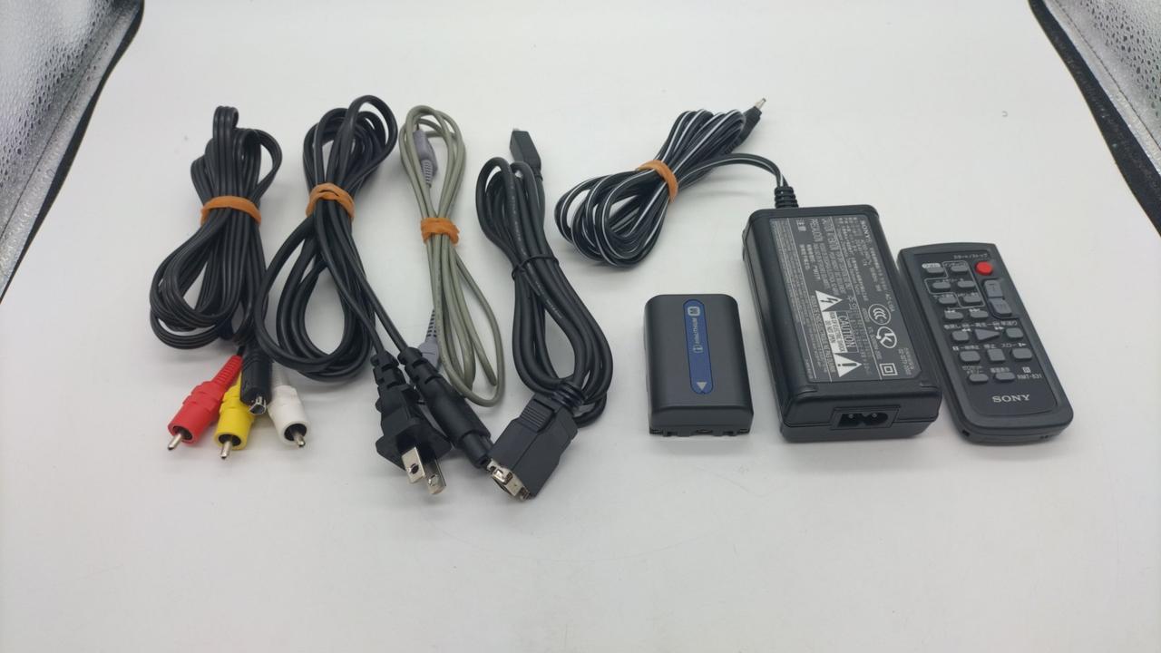 テープ再生可 映像素子不良 メニュー等OSD表示するがカメラの映像映らず 付属品:化粧箱 バッテリー 電源(ACアダプター) 接続ケーブル |