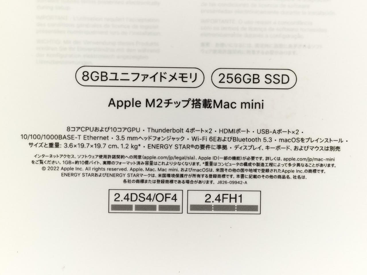 SSD:256GB メモリ容量:8GB GPU:Apple M2 10コア |