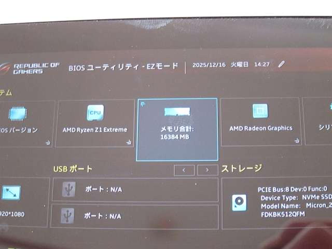 Windows11 Ryzen Z1 Extremeプロセッサー メモリ:16GB SSD:512GB |