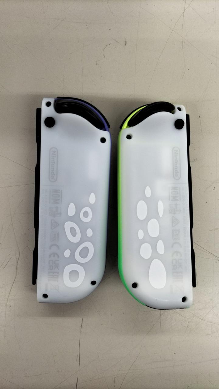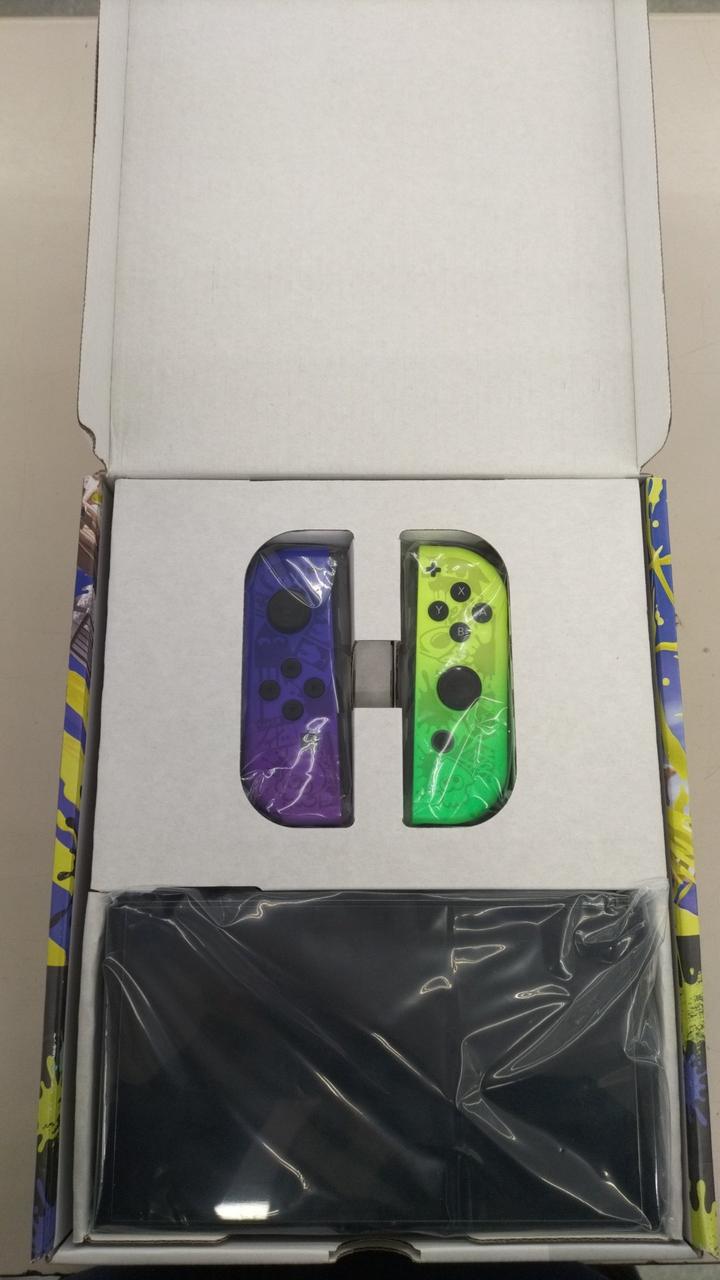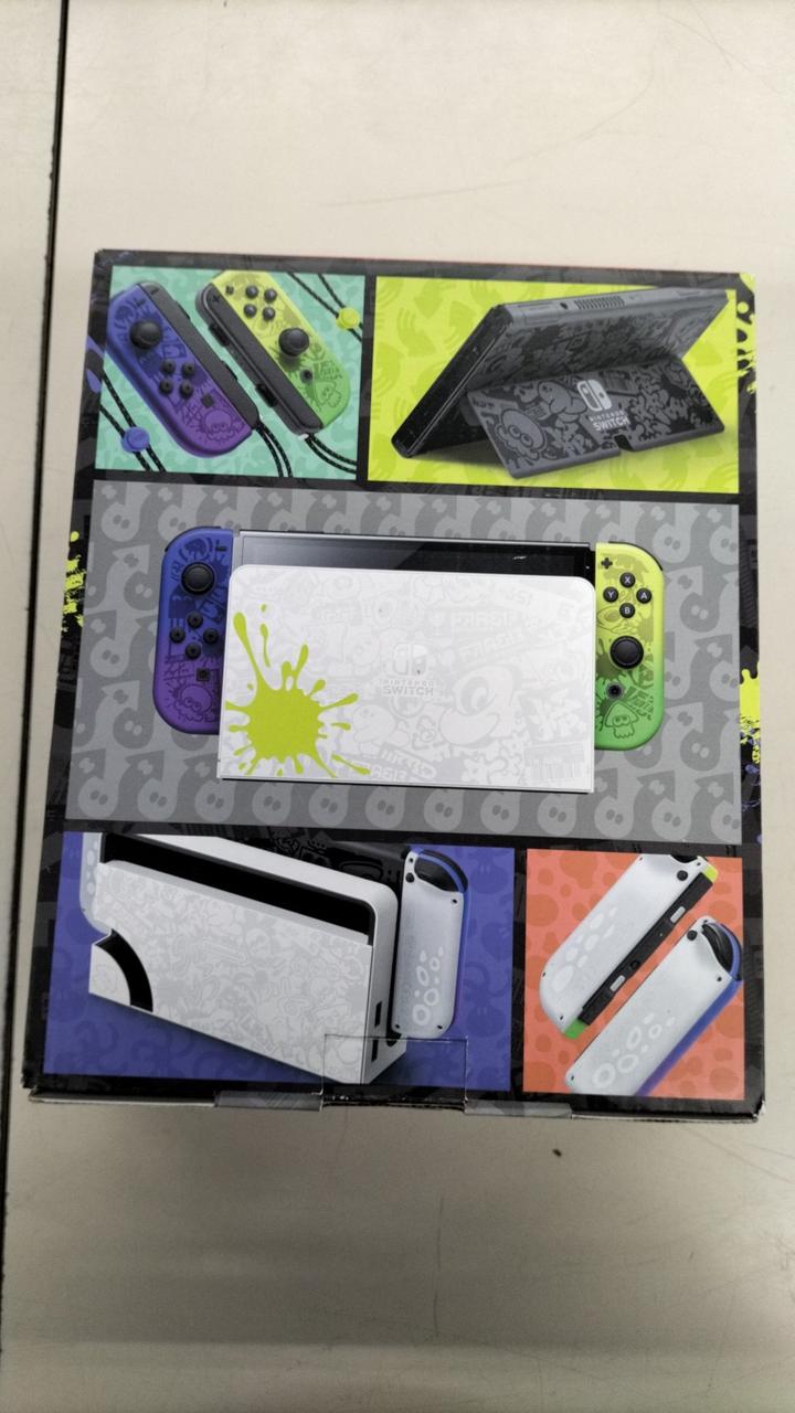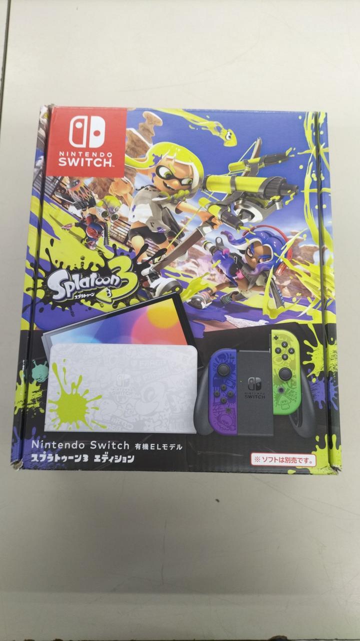 『スプラトゥーン3』のデザインをあしらったNintendo Switch(有機ELモデル)本体セットです。 |