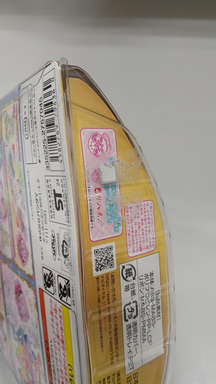 箱の下にシールの残りがあり、ベタつきがあります。 |