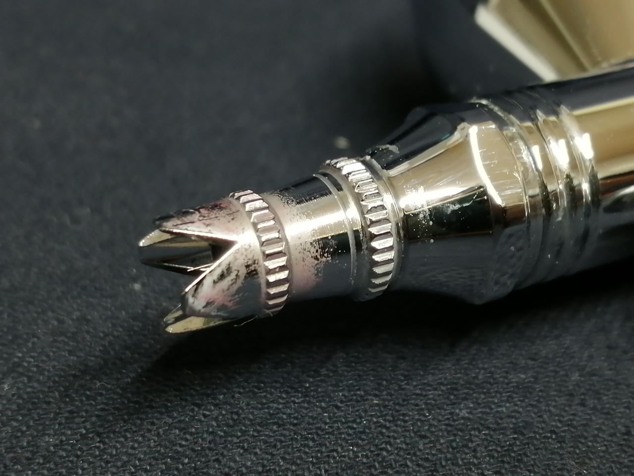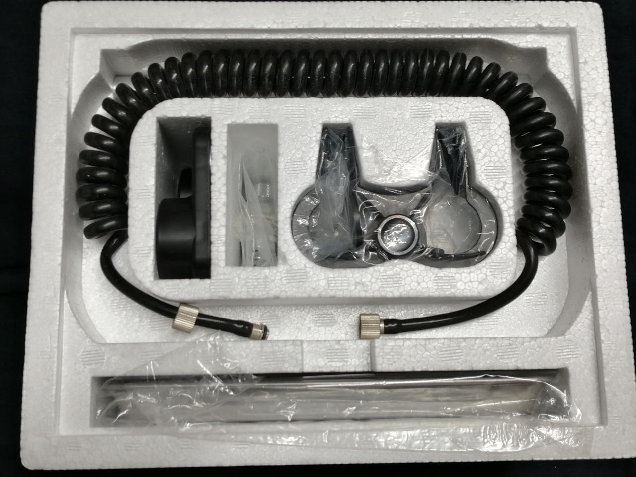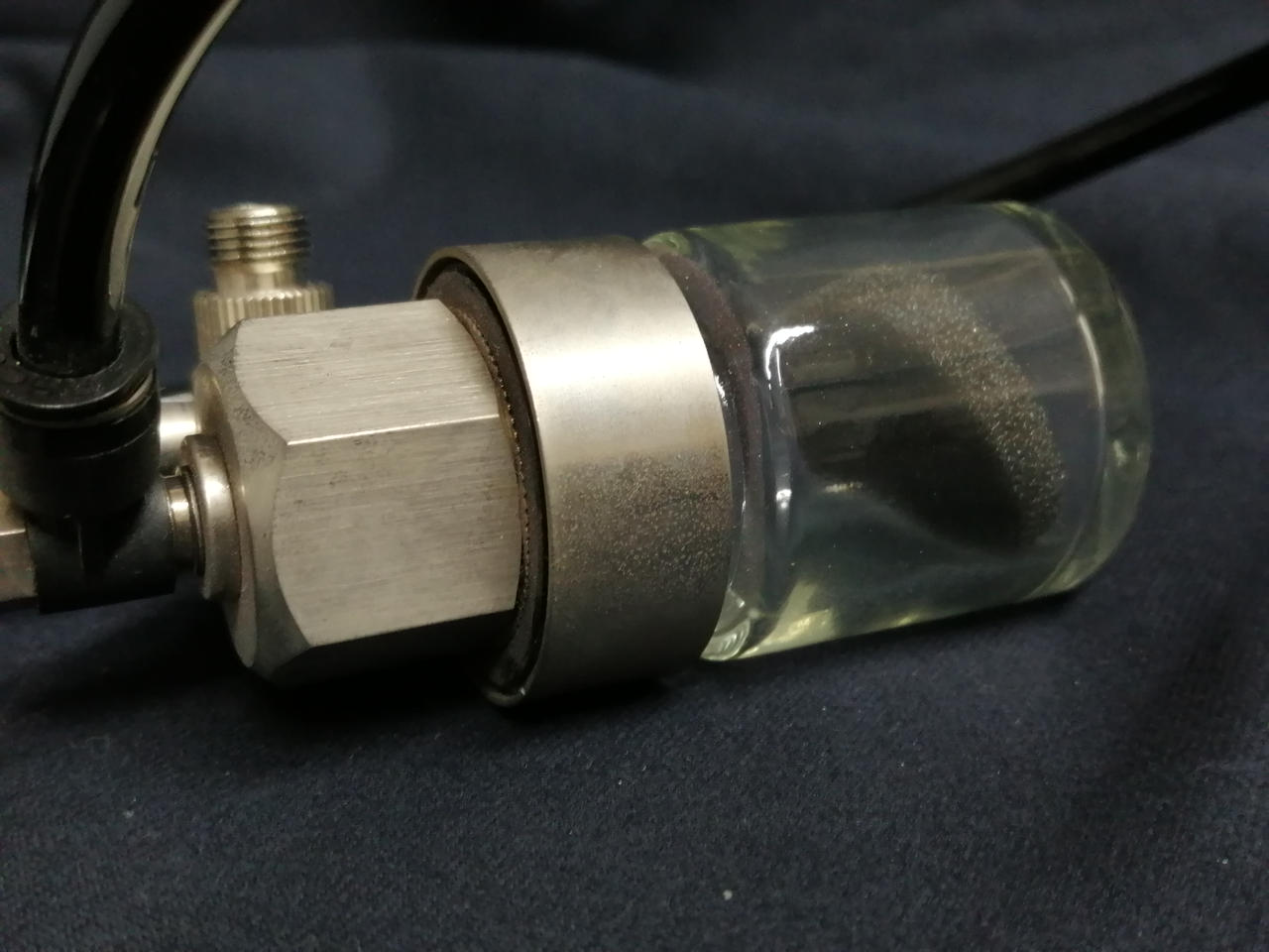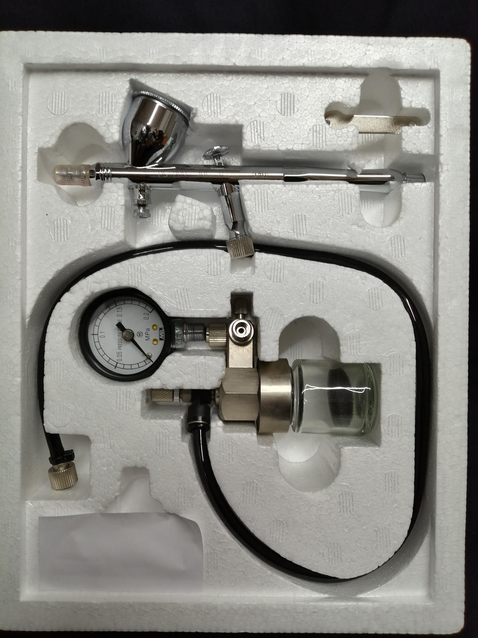 エアブラシ内部・スタンド・ホース・ダストキャッチャーに塗料汚れあり。トレイにサビあり。
