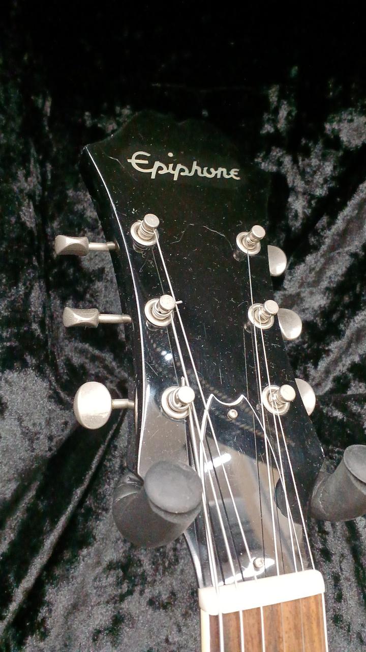 ラッカー塗装の他、ピックガードのEマークがシールなのも特徴 |