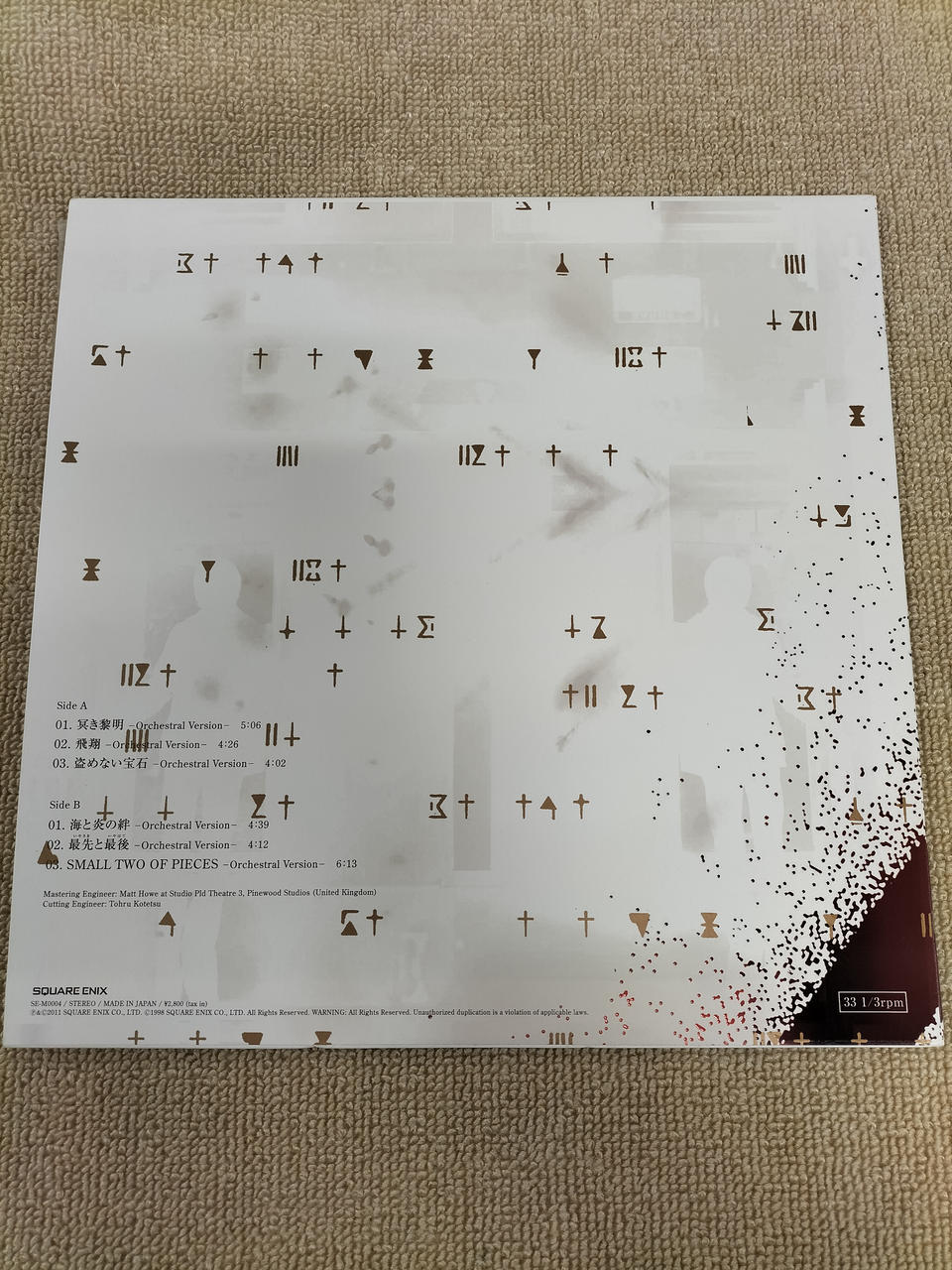 盤の歪みが直らない為ジャンクです。A面を1~2分程度再生すると3~4回程度音飛びします。B面は音飛びは見られませんでした。現状販売です。 |