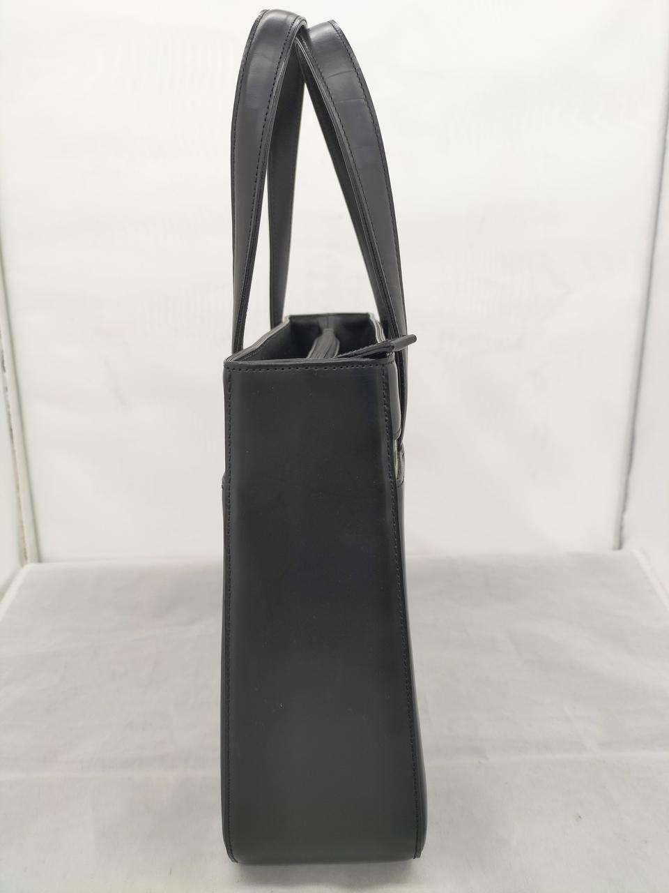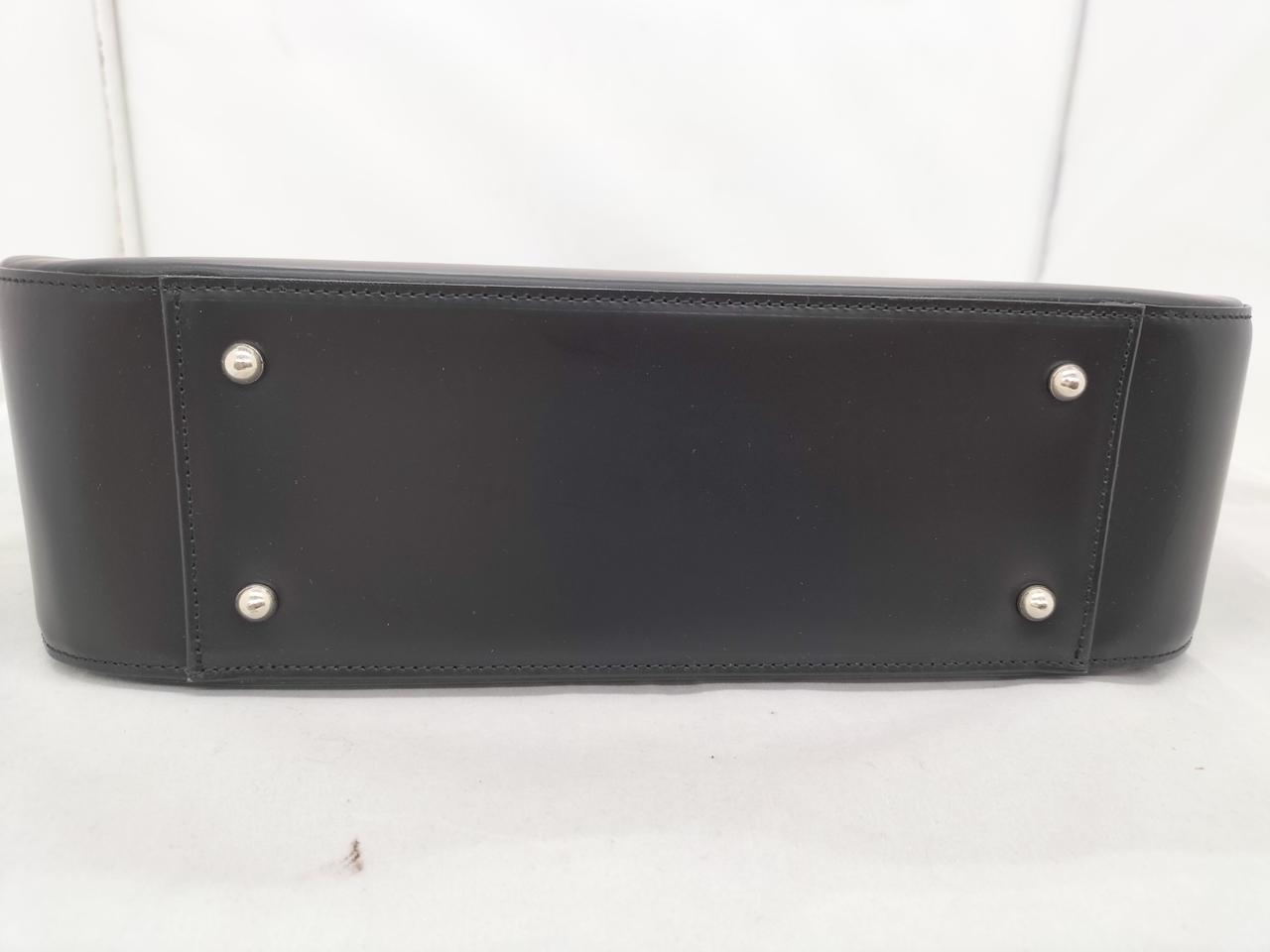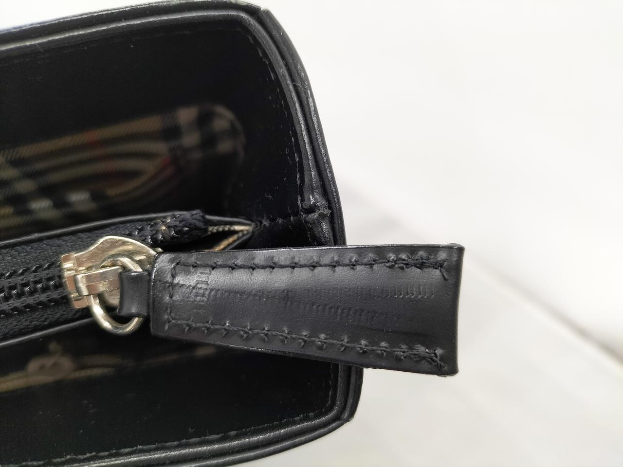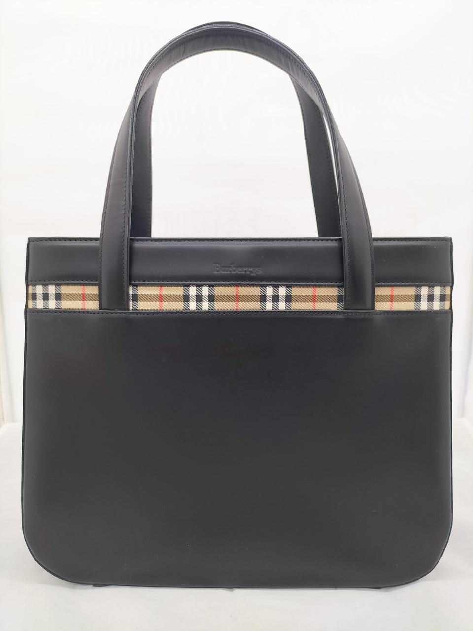 真っ黒なレザーに裏地のノヴァチェックがワンポイントで入ったシックなバッグです。