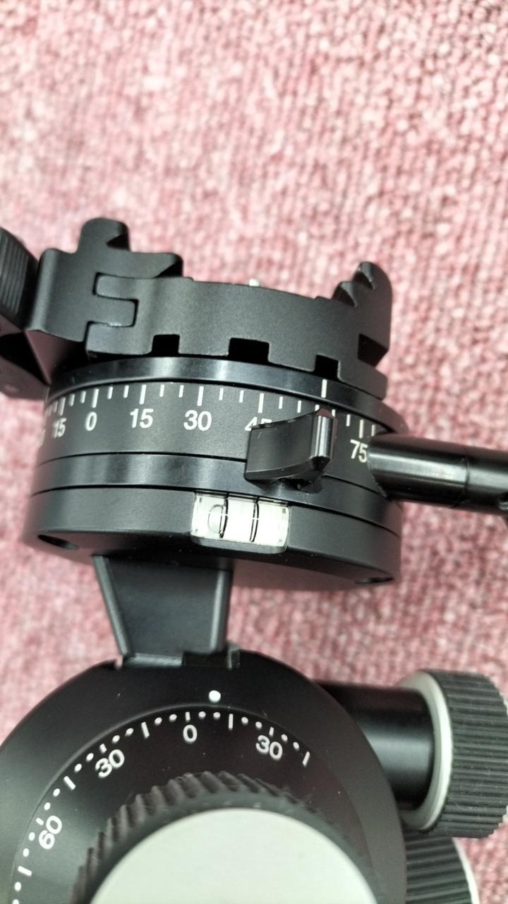 ※目盛り付き台座と粗動、微動ロックプレートの間に隙間がありガタつきます。 |