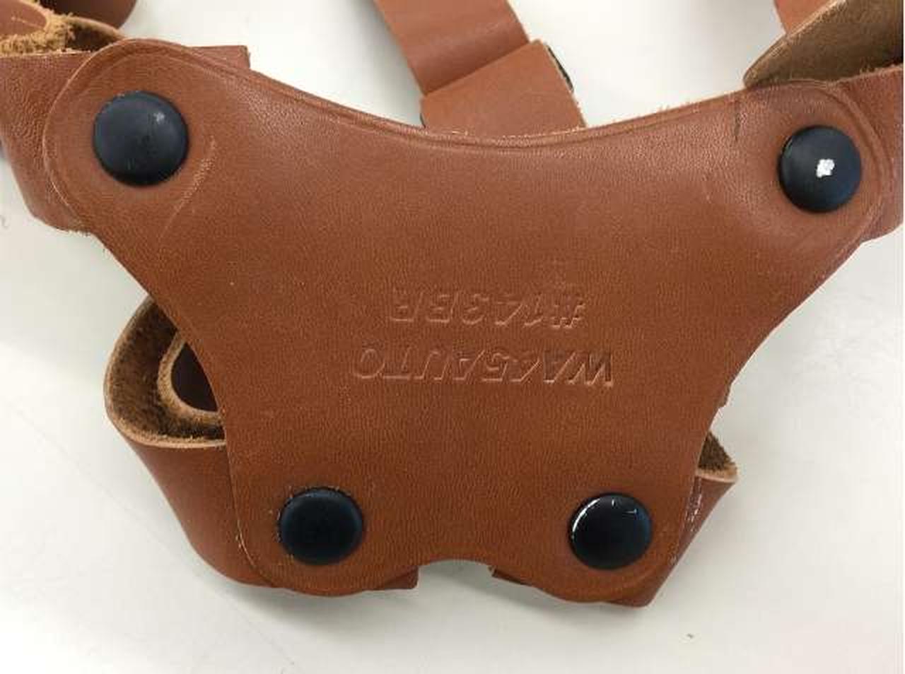 大きな使用キズ等は見られませんが背面ボタン部に塗装剥げ・革部に小キズ・色移りあり |