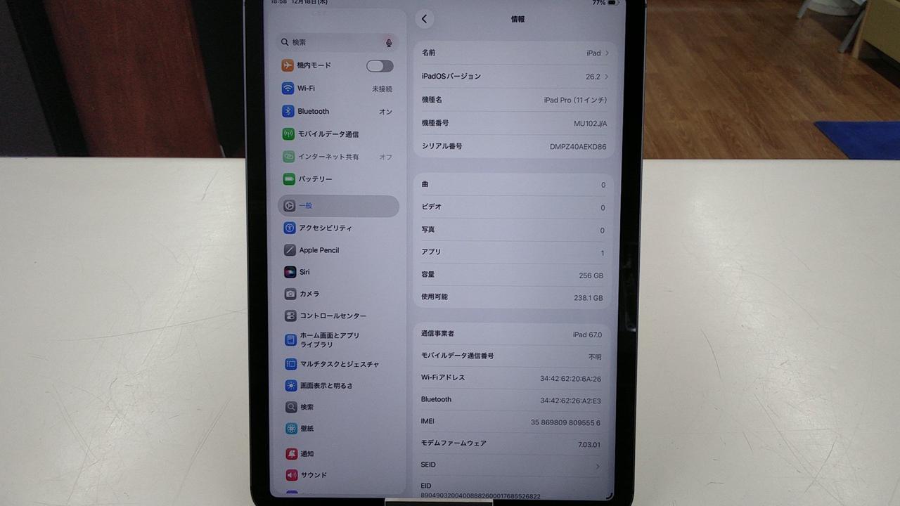 iPad Pro 11インチ 第1世代 Wi-Fi+Cellular 256GB スペースグレイ |