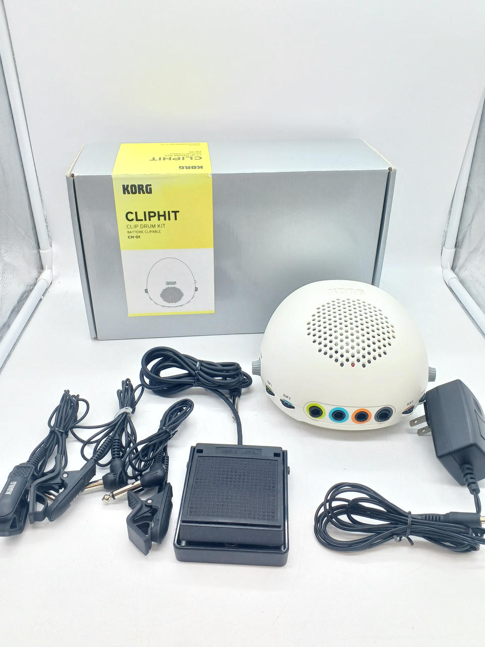センサー内蔵クリップを雑誌、机、ダンボール等あらゆるものをドラムキットにできる新発想のドラムキット |