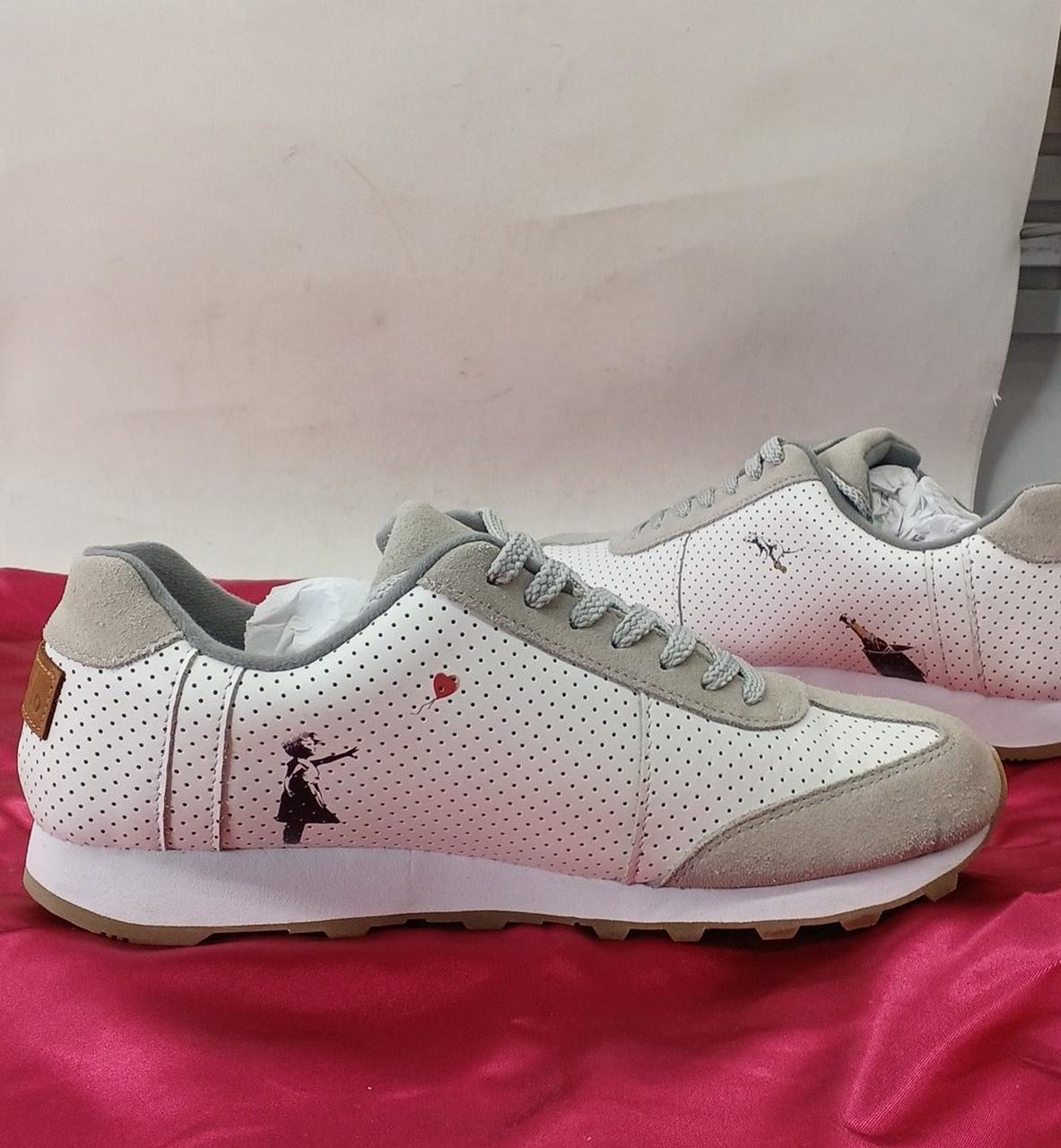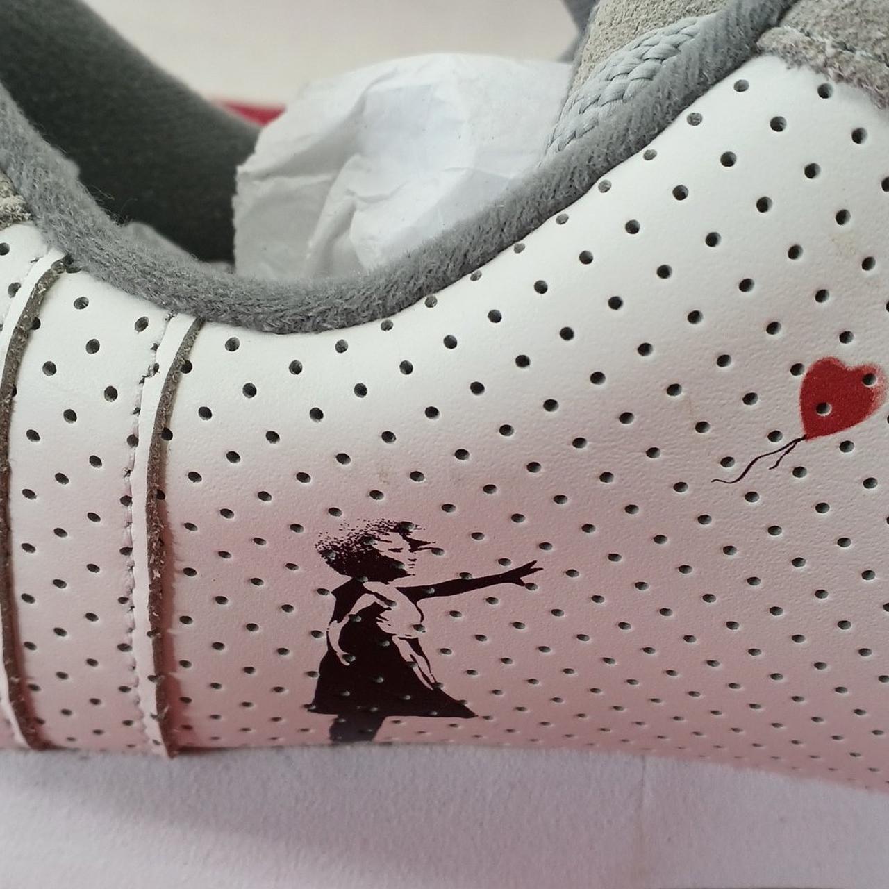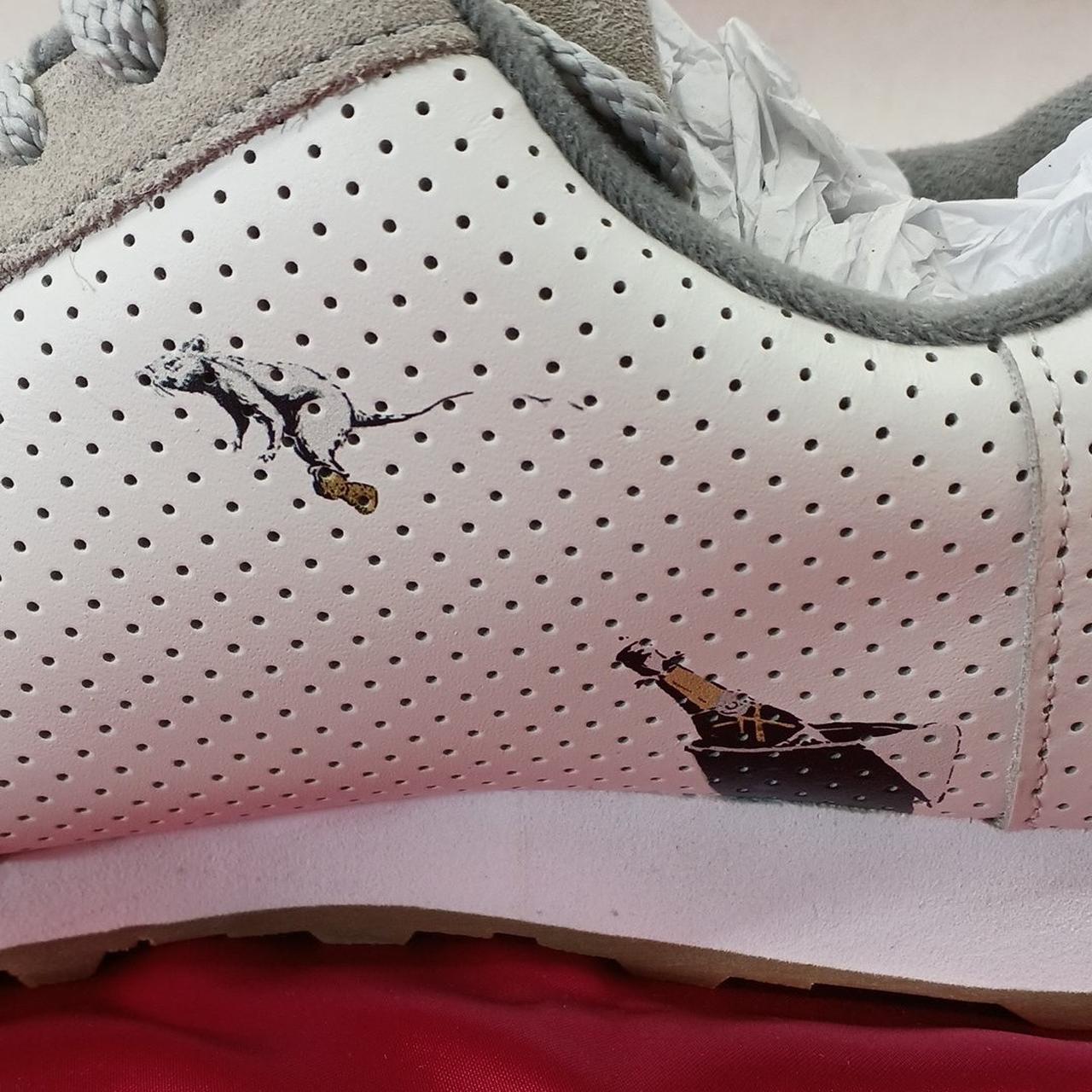バンクシーの4種類の絵柄が画かれたおしゃれなスニーカーです。