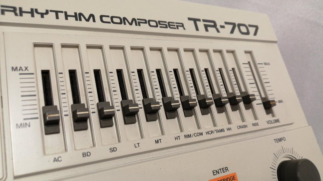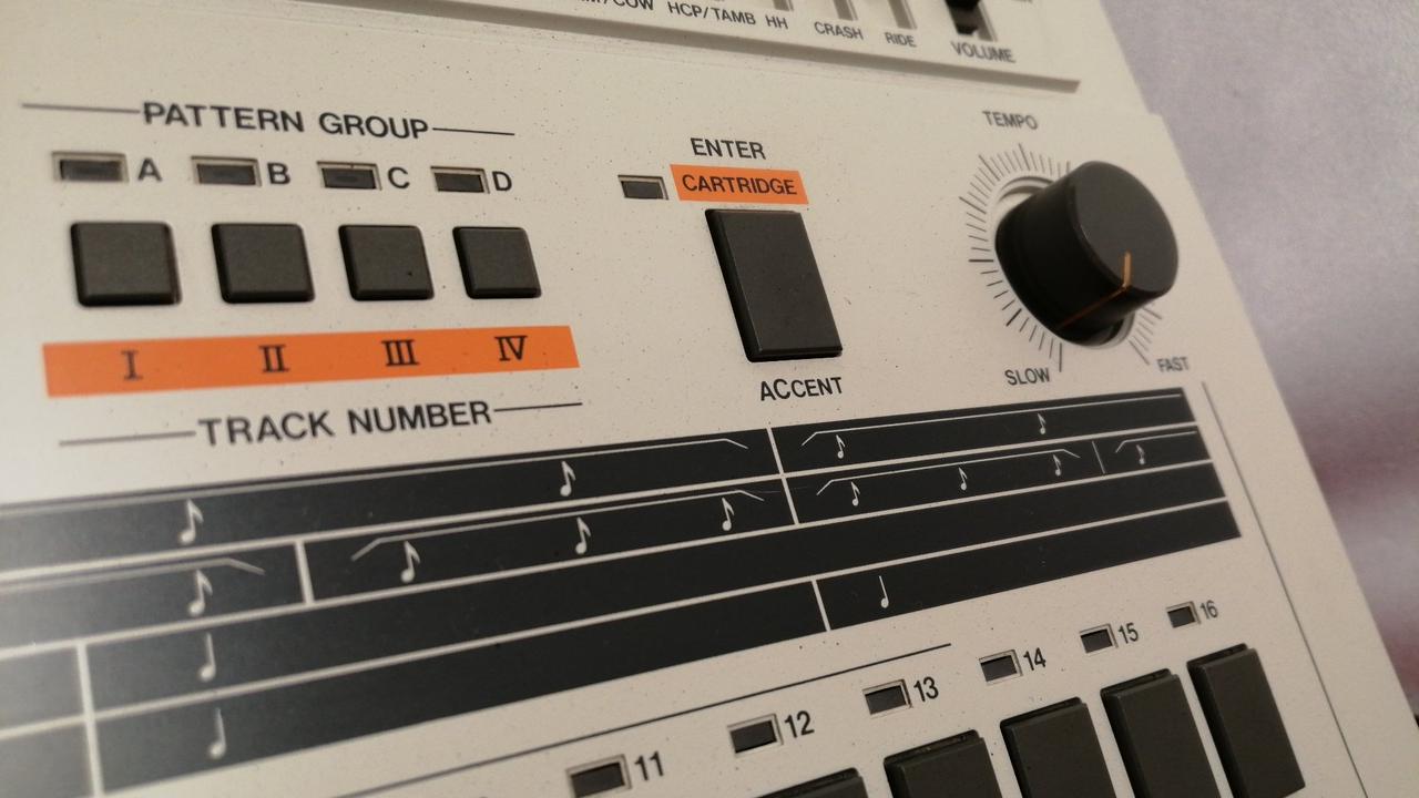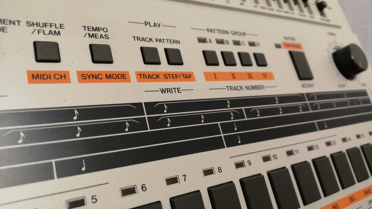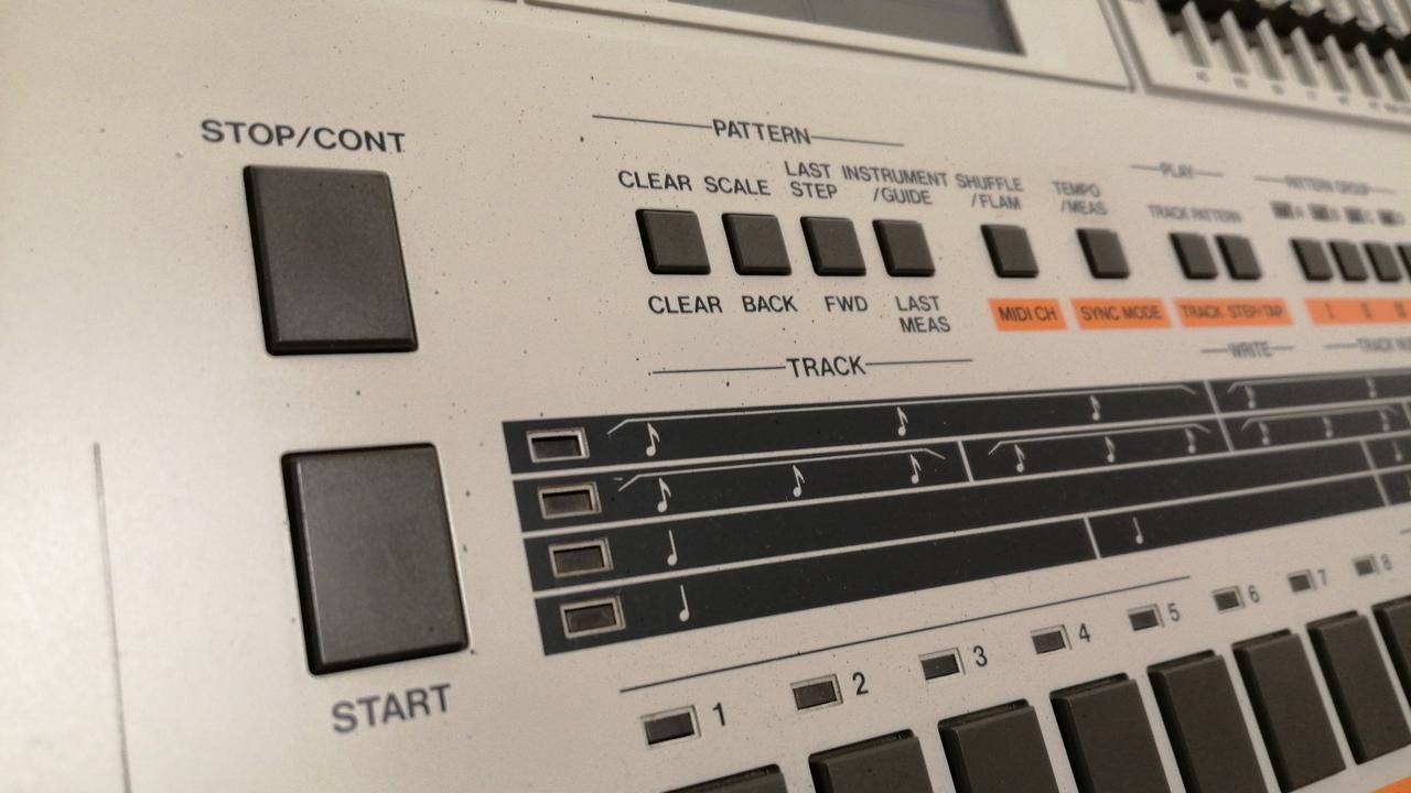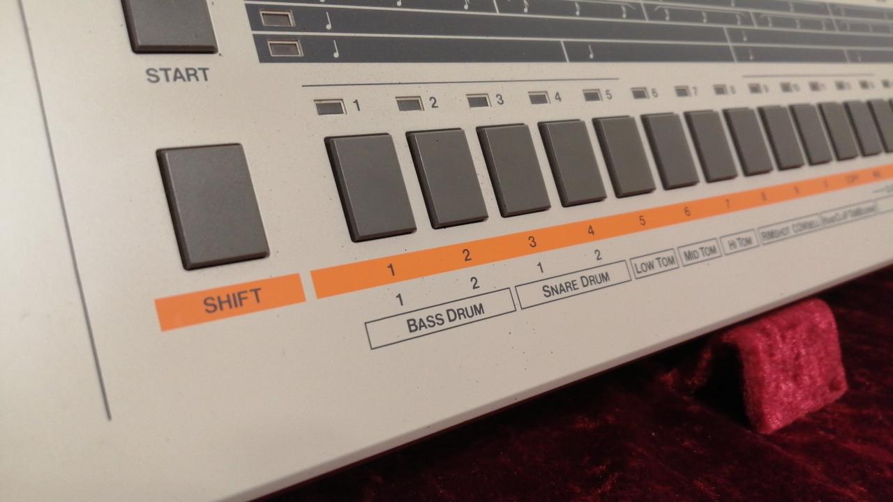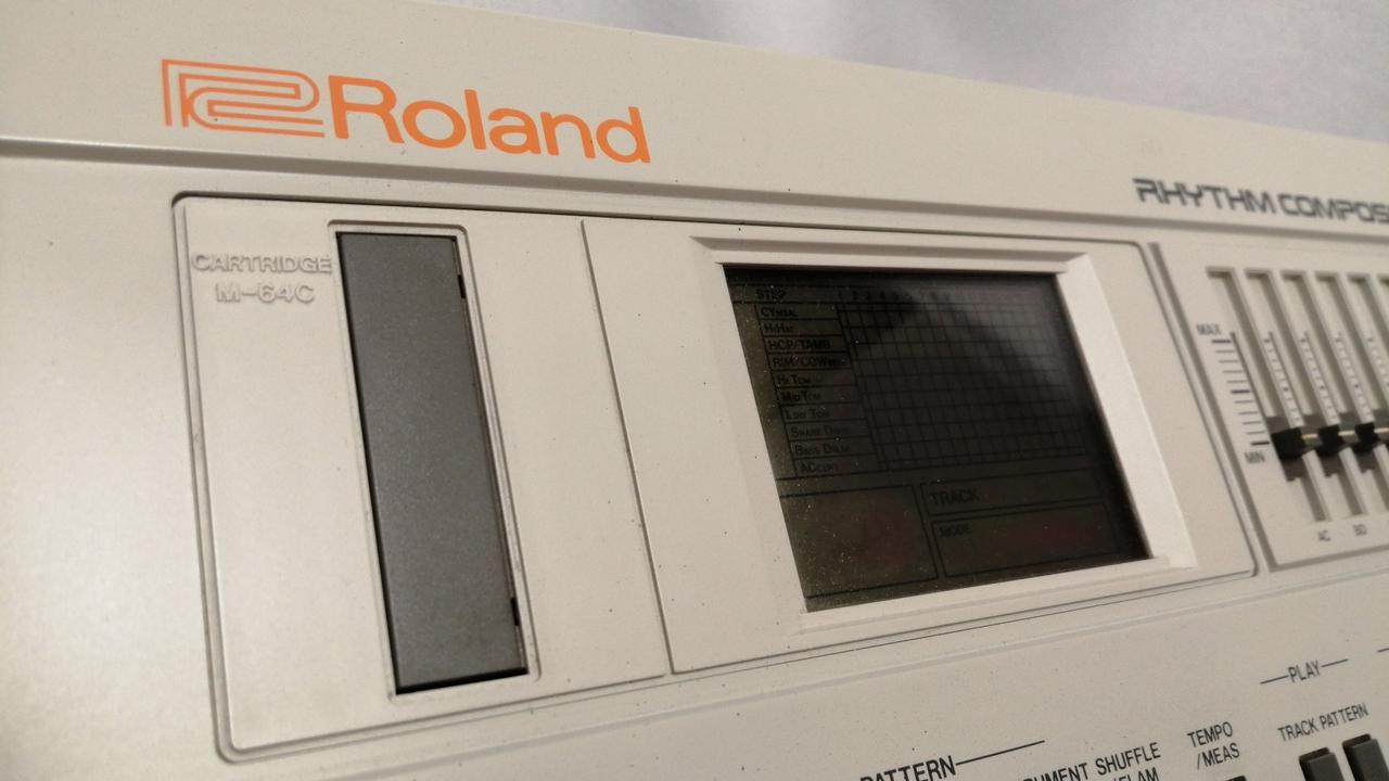 ROLAND初のPCMドラムマシン。64種類のリズムパターンを記憶させ、最大999小節(4トラック)を自動演奏可能。 |