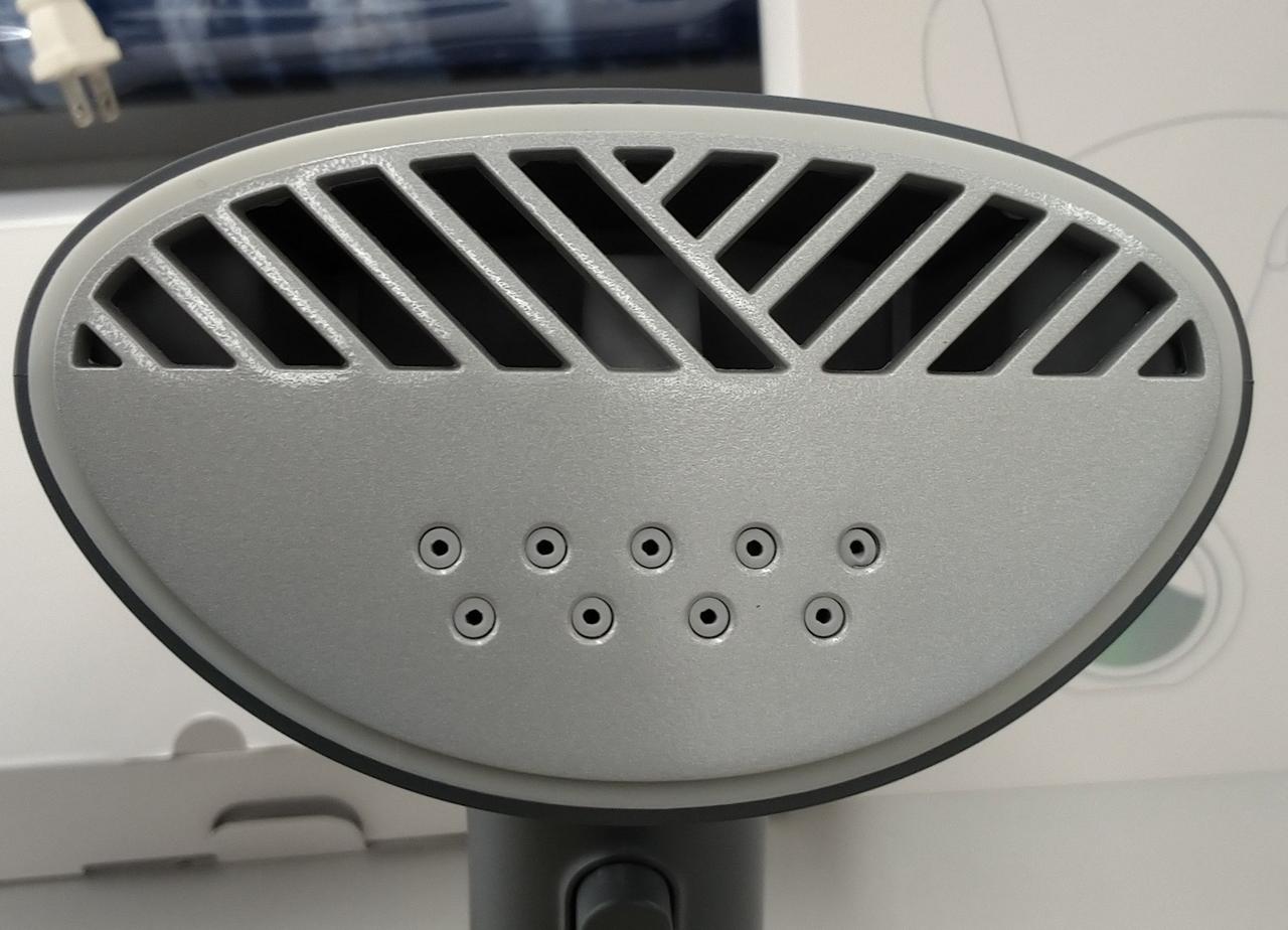 アイロンがけの際、従来の衣類スチーマーのように衣類を引っ張る必要がないため、片手で操作可能で、火傷しにくい。 |