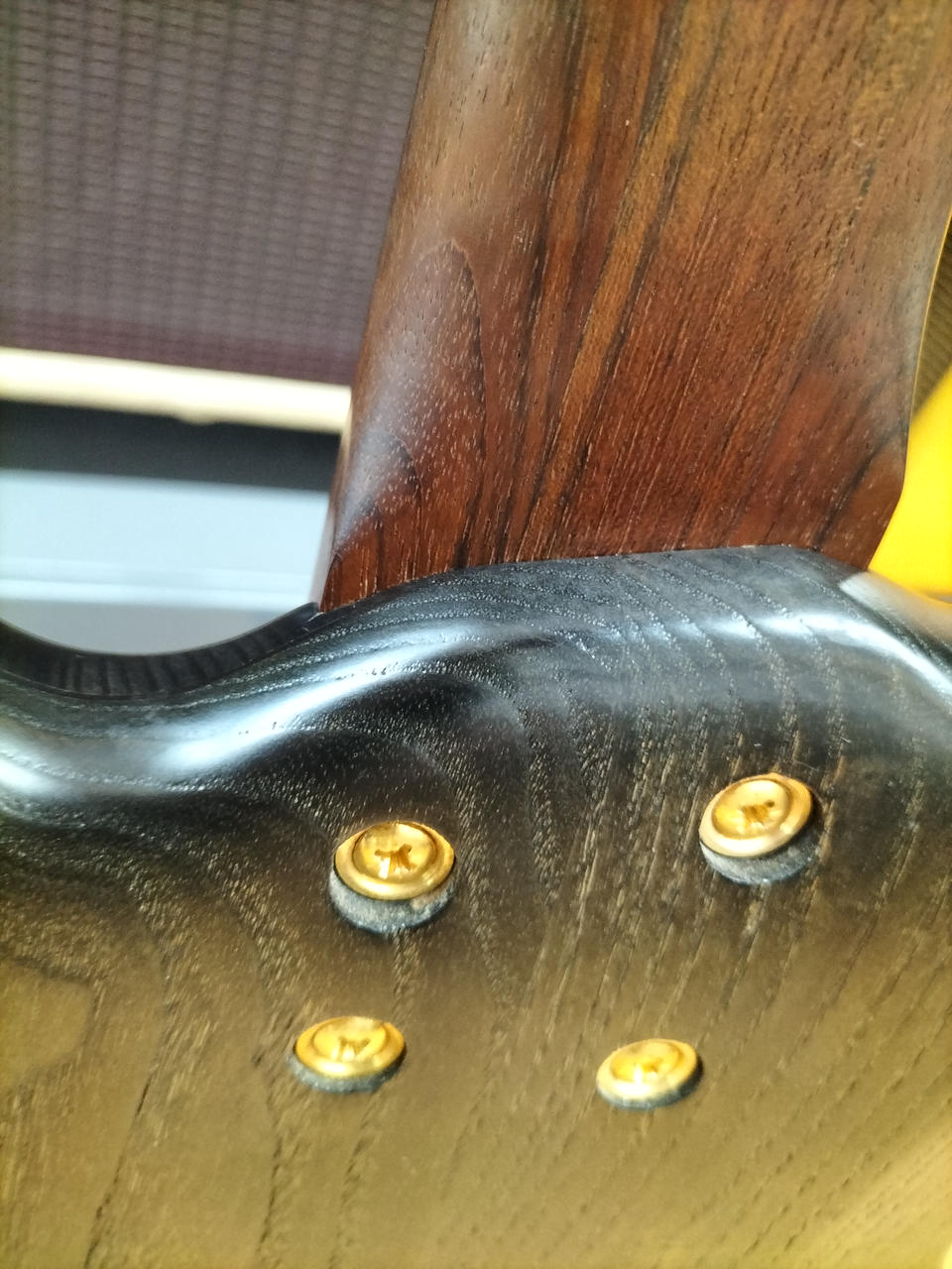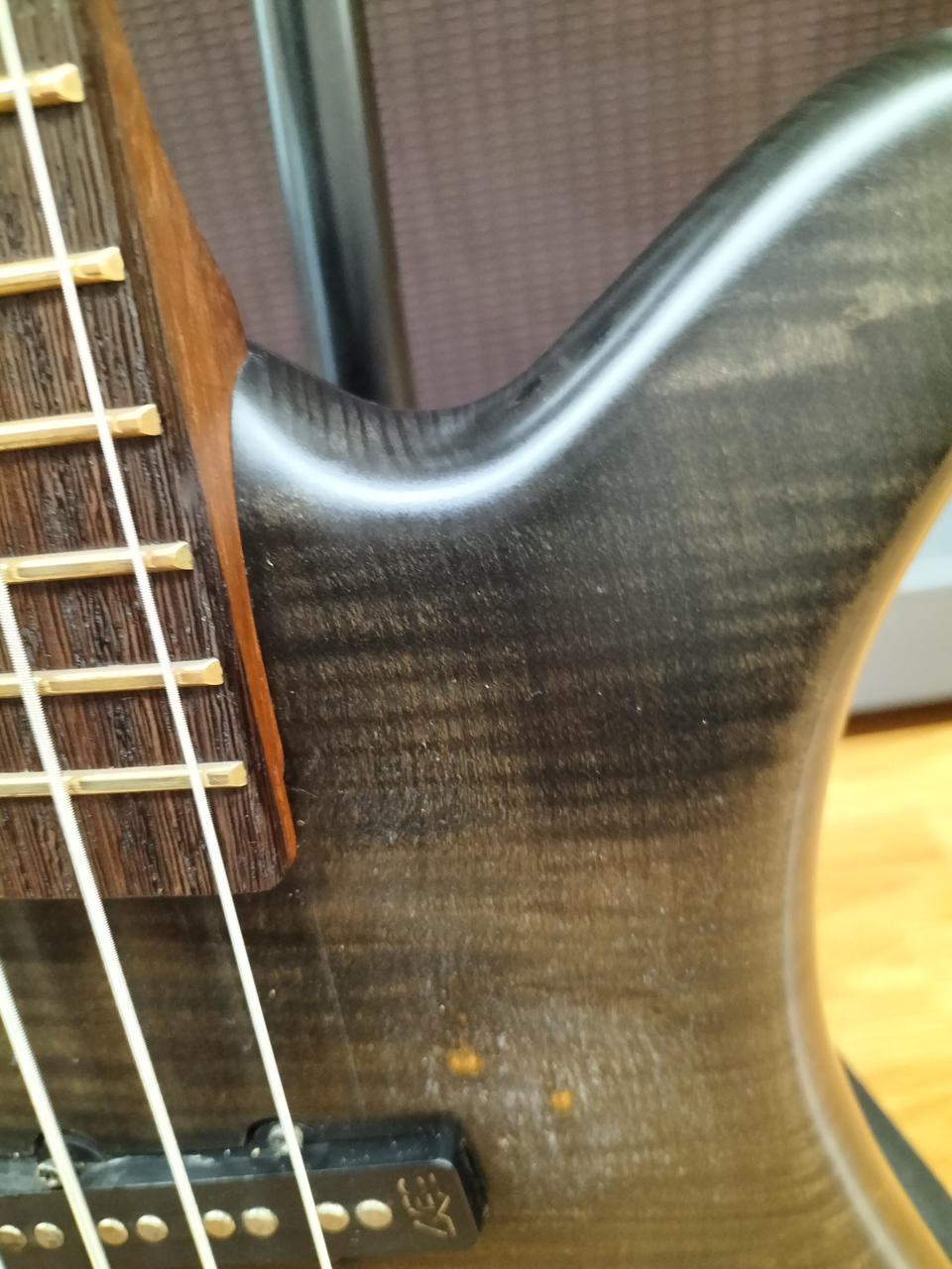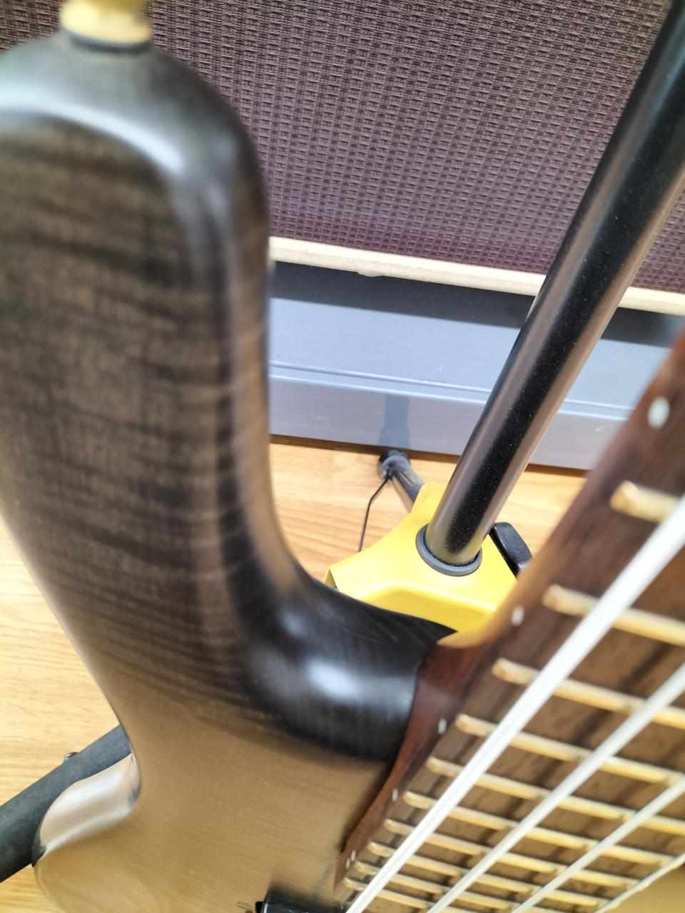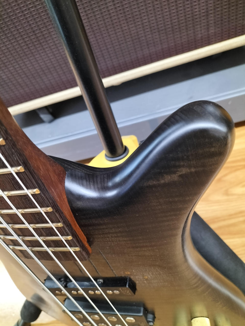 弾きやすいセッティングで演奏するにはネックの矯正が前提になる状態です。 |